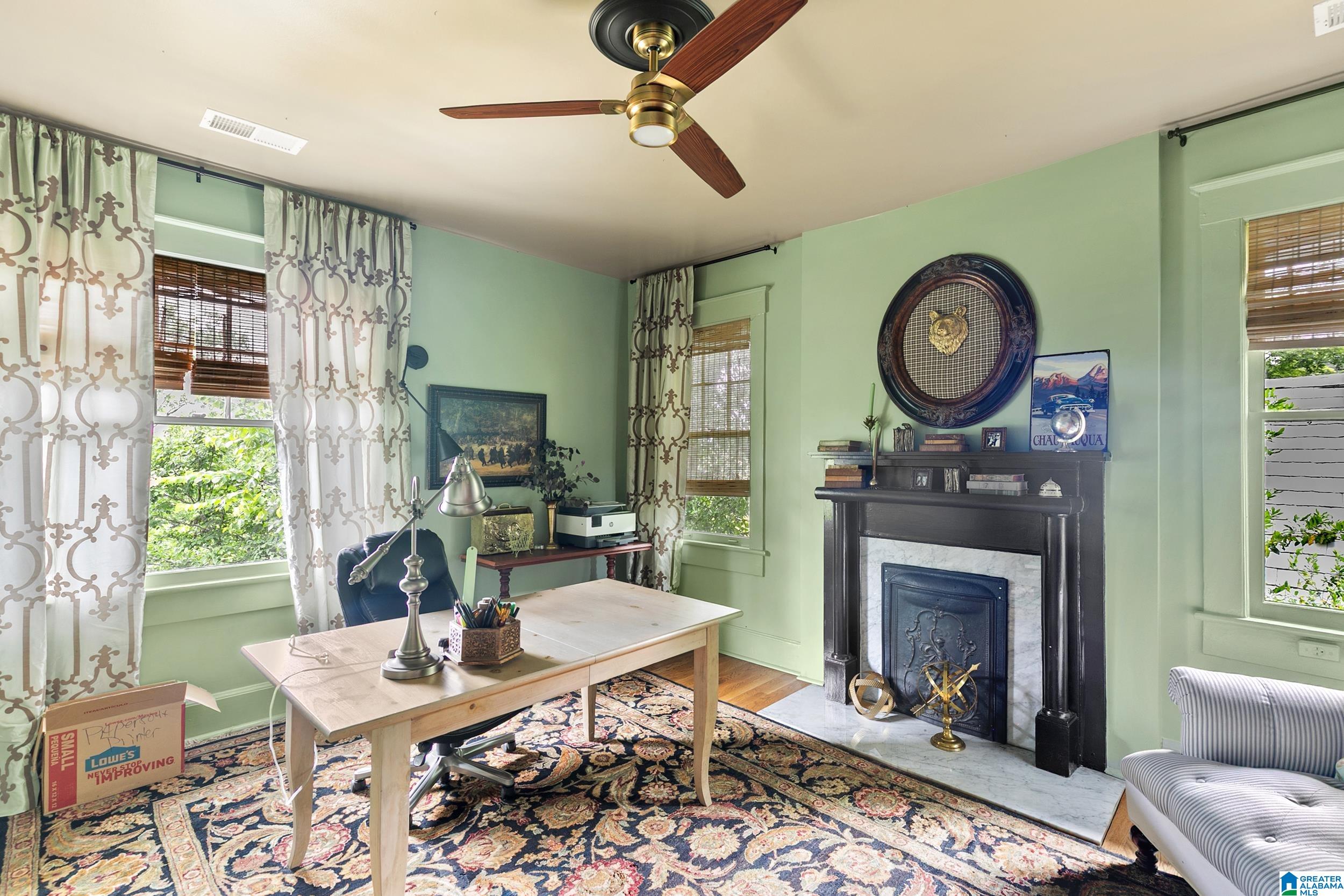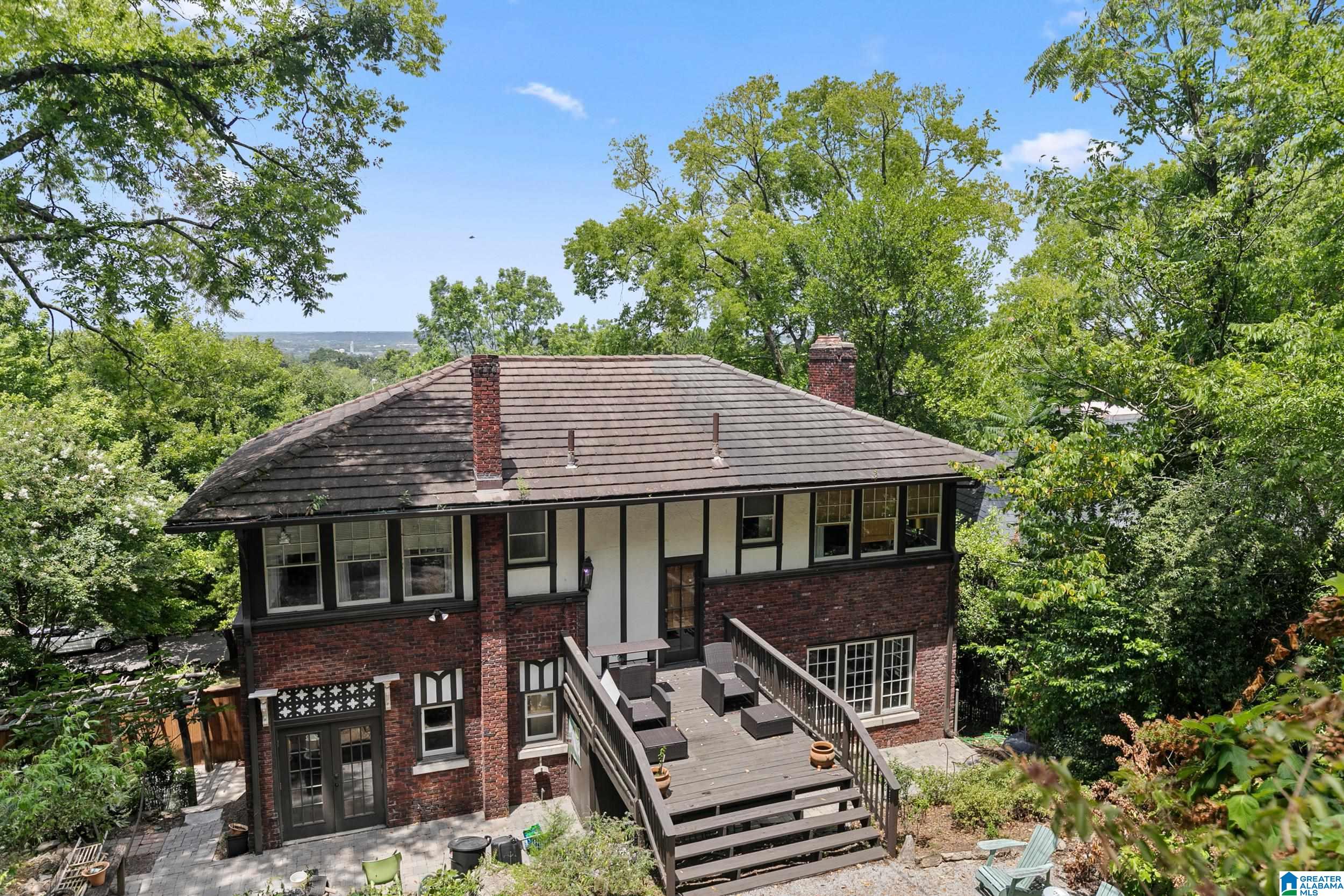Welcome home to this historic 1918 home, full of charm and surrounded by stunning views from front and back! The welcoming front terrace is a perfect spot to enjoy a glass of wine or entertain guests. The main level offers a formal living room with original fireplace, formal dining, and an additional study/den. There are soaring ceilings, gleaming hardwood floors, and abundant natural light throughout the living space. The kitchen offers modern updates with tile floor and backsplash, granite countertops, recessed lighting, and lots of cabinet/counter space. Upstairs, the 4 bedrooms have hardwood floors and AMAZING views! The renovated master bath has a luxurious shower, water closet, and double vanities, while the guest bath has timeless hexagonal tile floor and original refurbished tub. There is off street ally parking with a 2-car carport as well. You will be convenient to parks, fabulous restaurants, shopping, UAB, and Downtown. You don't want to miss this stunning piece of history!