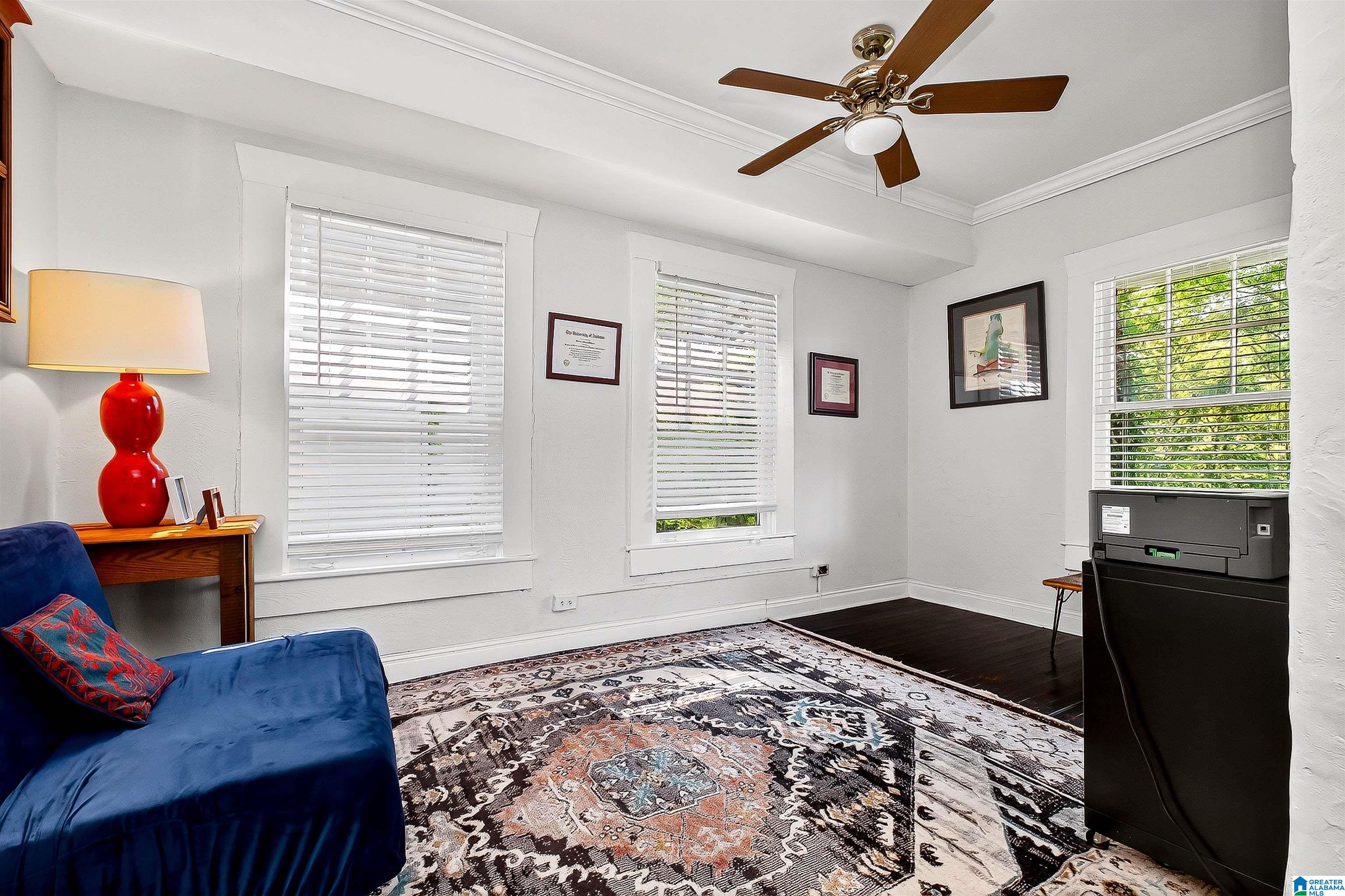 Charming 2/1.5 bungalow nestled on one of the best streets in Highland Park! Watch the seasons change from the swing on the spacious front porch, and catch breathtaking sunsets with unobstructed views from your back deck. Inside, tall ceilings, crown molding, original hardwoods, and light-filled pop-out windows create a warm, inviting space. A cozy gas fireplace framed by built-in bookshelves anchors the living room, while the formal dining room and sunroom (currently used as a playroom) add function and flexibility. Two bedrooms, a full bath, and a bright, oversized kitchen complete the main level. Downstairs has endless potential with a finished office, utility room with half bath, and bonus space. The detached garage provides extra storage. All new electrical 2025, laundry moved to main 2022, new plumbing throughout with water heater and whole house filtration system 2018, full exterior renovation with paint, gutters, and insulation 2016, roof 2016, foundation reinforcement 2014.