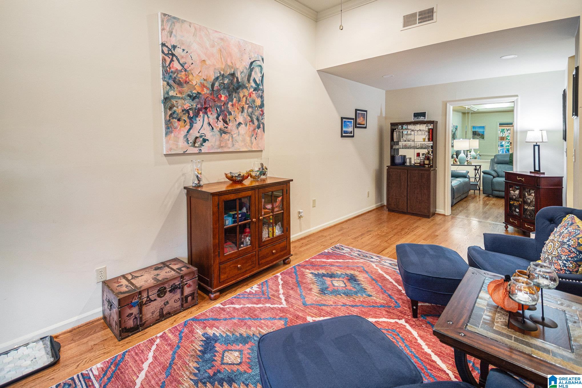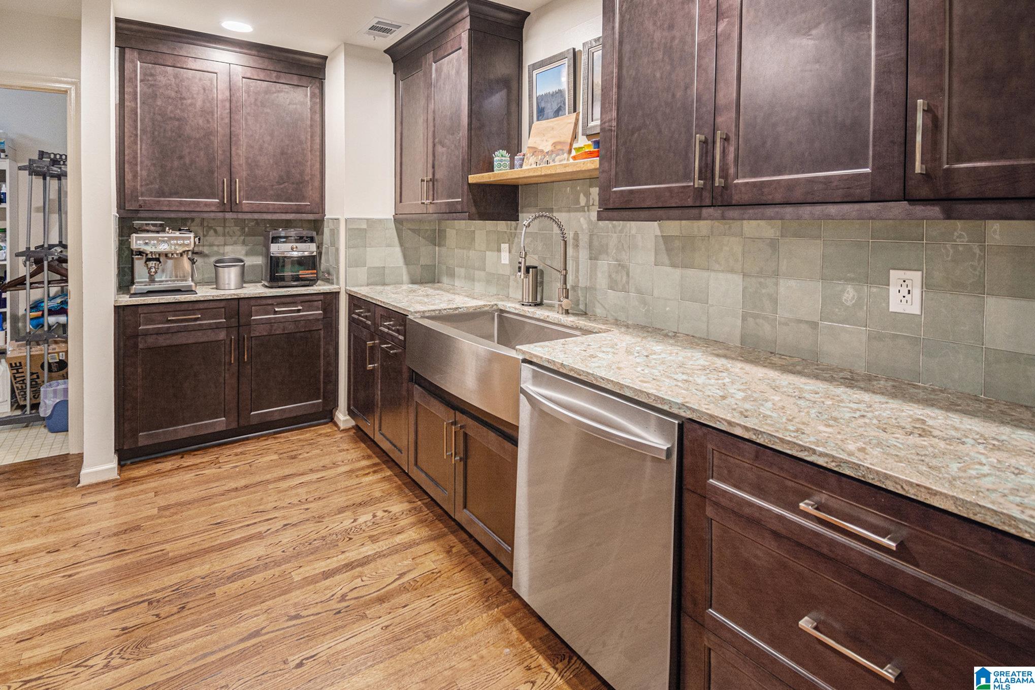 Welcome to The Avalon! Historic building located just around the corner from Rushton Park, Rojo & O'Henry's! Enjoy the amazing back patio that doubles for entryway w/close parking behind the unit. Formal living room greets you w/10+ foot ceilings, custom built-in, fresh interior paint, beautifully refinished hardwoods & lighting throughout. Formal dining is currently being used as tv den, but easily converted back. Kitchen updated w/new cabinets that included custom slide outs, granite countertops, tiled backsplash, new stainless appliances & coffee bar. Laundry w/storage & walk-in pantry w/shelving. Primary bedroom w/custom built-ins, 2 closets, ensuite w/double vanity, tiled shower, anti fog mirror & smart bidet. The 2nd bedroom features a desk/Murphy bed combo that will remian & is perfect for an office or guest space. The full hall bathroom was recently renovated w/new tile, shower, vanity & smart bidet. You will love relaxing in the afternoon on this amazing patio w/new railing.