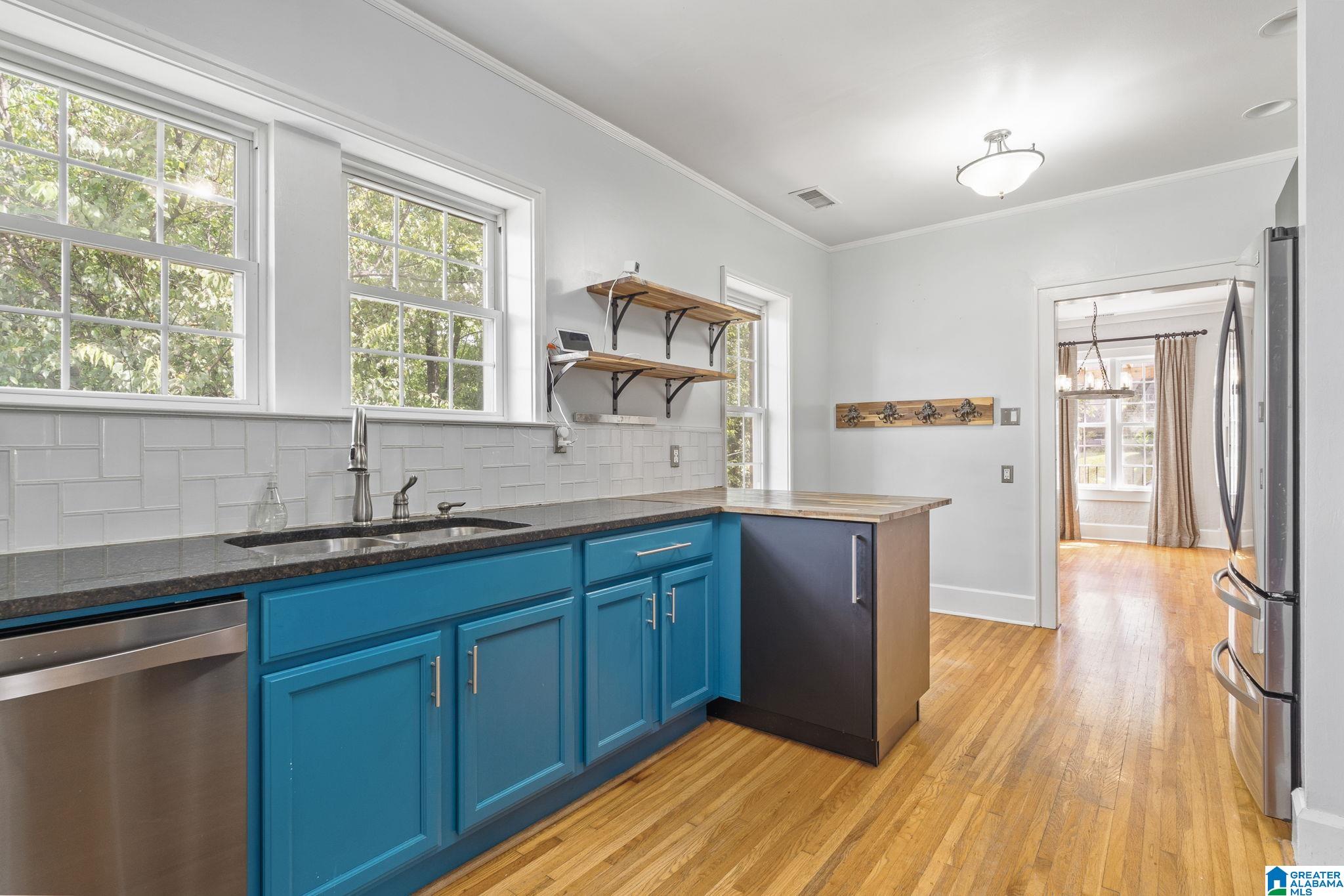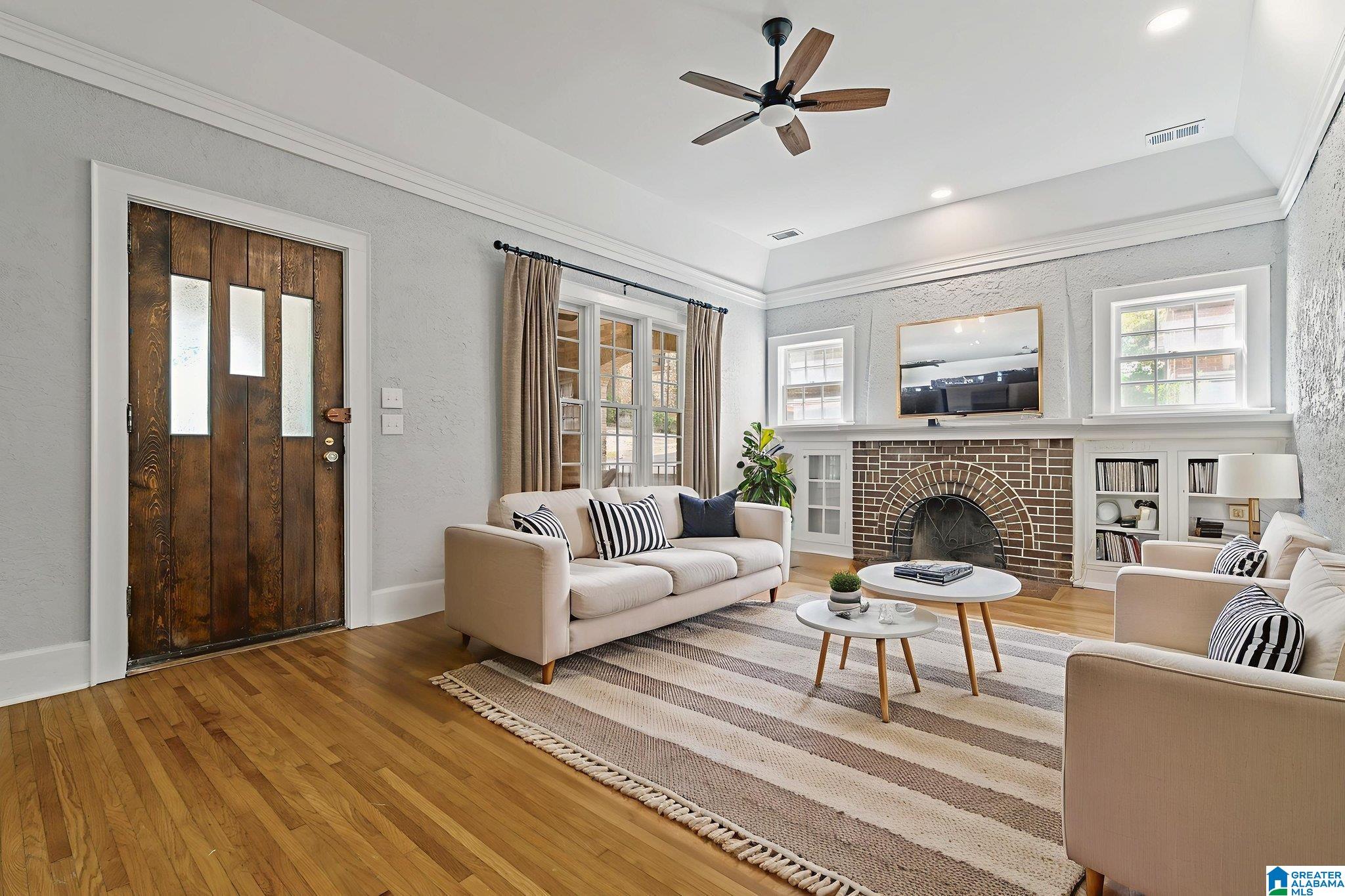 Registered with the Jefferson County Historical commission is this LARGE three bedroom two bath all brick tudor home with TWO living spaces! Step onto the front porch offering so many tudor details.Step inside to the living and dining spaces that offer so much tudor design including tall ceilings wonderful double pane windows fresh paint incredible arched fireplace and beautiful hardwood floors.The spacious main level updated kitchen offers every modern day convenience and features stone countertops wonderful wood cabinetry and built-in stainless appliances.Retreat to the large primary bedroom that includes beautiful hardwood floors fresh paint and private side porch.The basement space offers additional living space or apartment and includes another living area second kitchen full bath laundry area and bedroom as well as heated and cooled storage.Relax on the large deck overlooking a wonderful yard and new huge detached two car garage with so much storage in this space. A must see!!