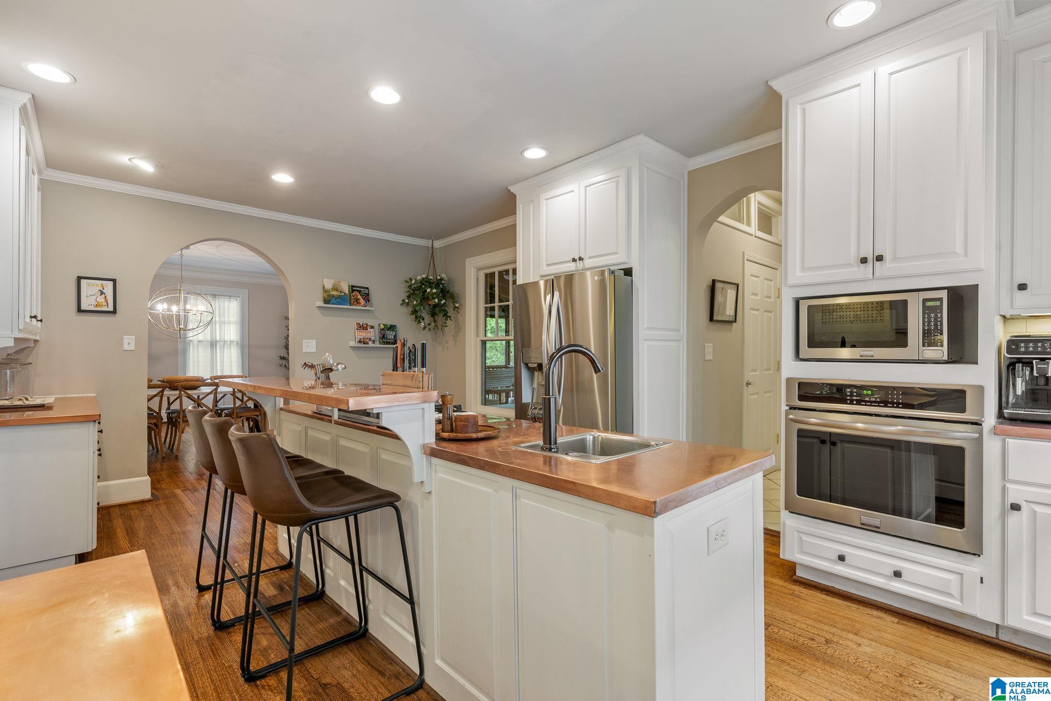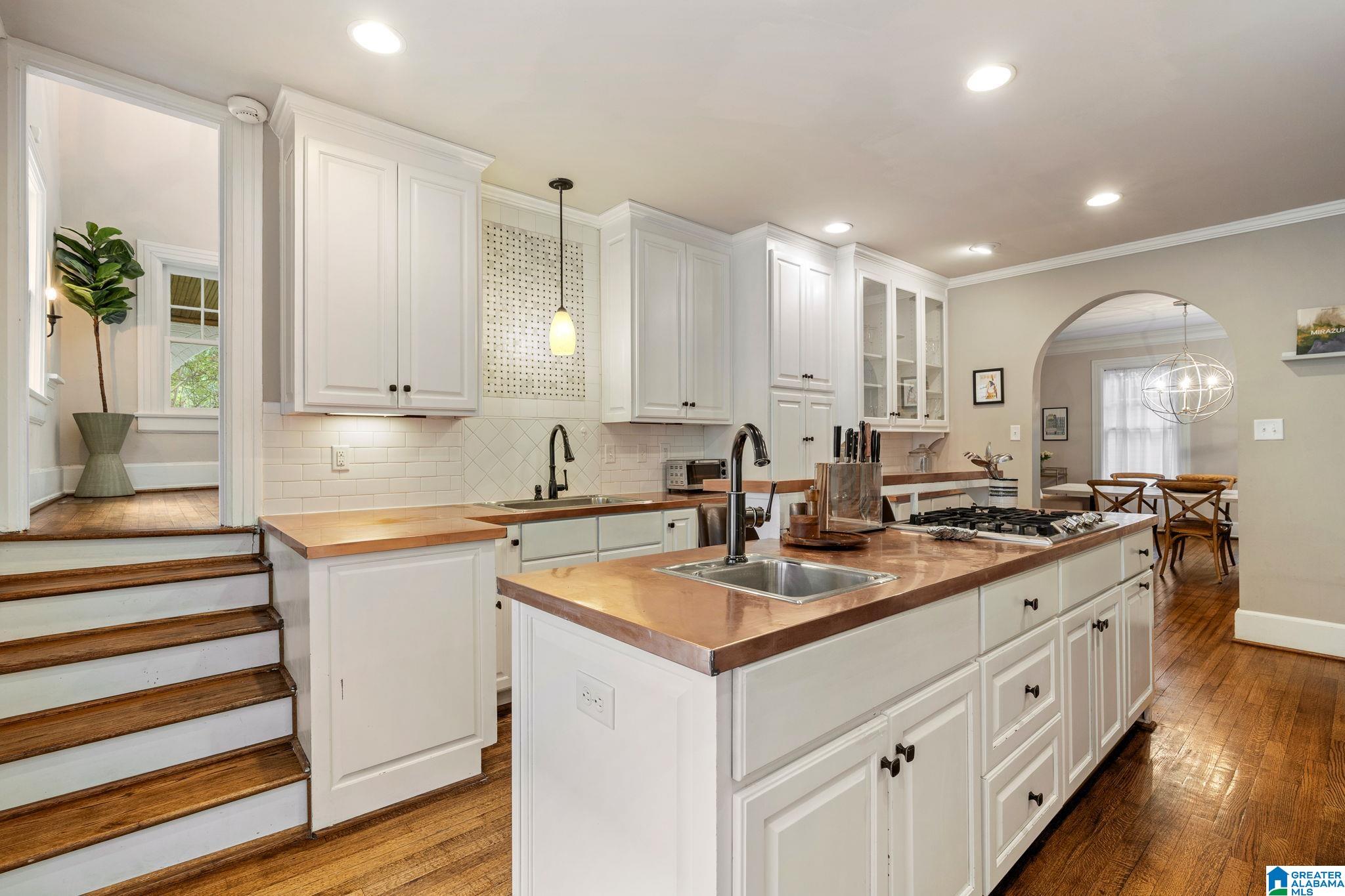 Historic 1920s Brick Beauty in the Heart of Highland Park! Experience the perfect blend of timeless character and modern updates in this 4-bedroom, 2.5-bath home. The main level boasts a large living room with a cozy gas fireplace, elegant crown molding, and a formal dining room with French doors leading to a charming screened-in porch. The updated kitchen is a chef's dream, featuring unique copper countertops, a large island with a gas cooktop, and stainless steel appliances. A convenient half bath and laundry complete the main floor. Upstairs, the spacious primary suite offers a private en-suite bathroom, accompanied by two additional bedrooms and another full bath. The third floor provides a versatile fourth bedroom and flex space, perfect for a home office or playroom. Situated just moments from Birmingham's best parks, restaurants, and downtown. This is historic city living at its finest!