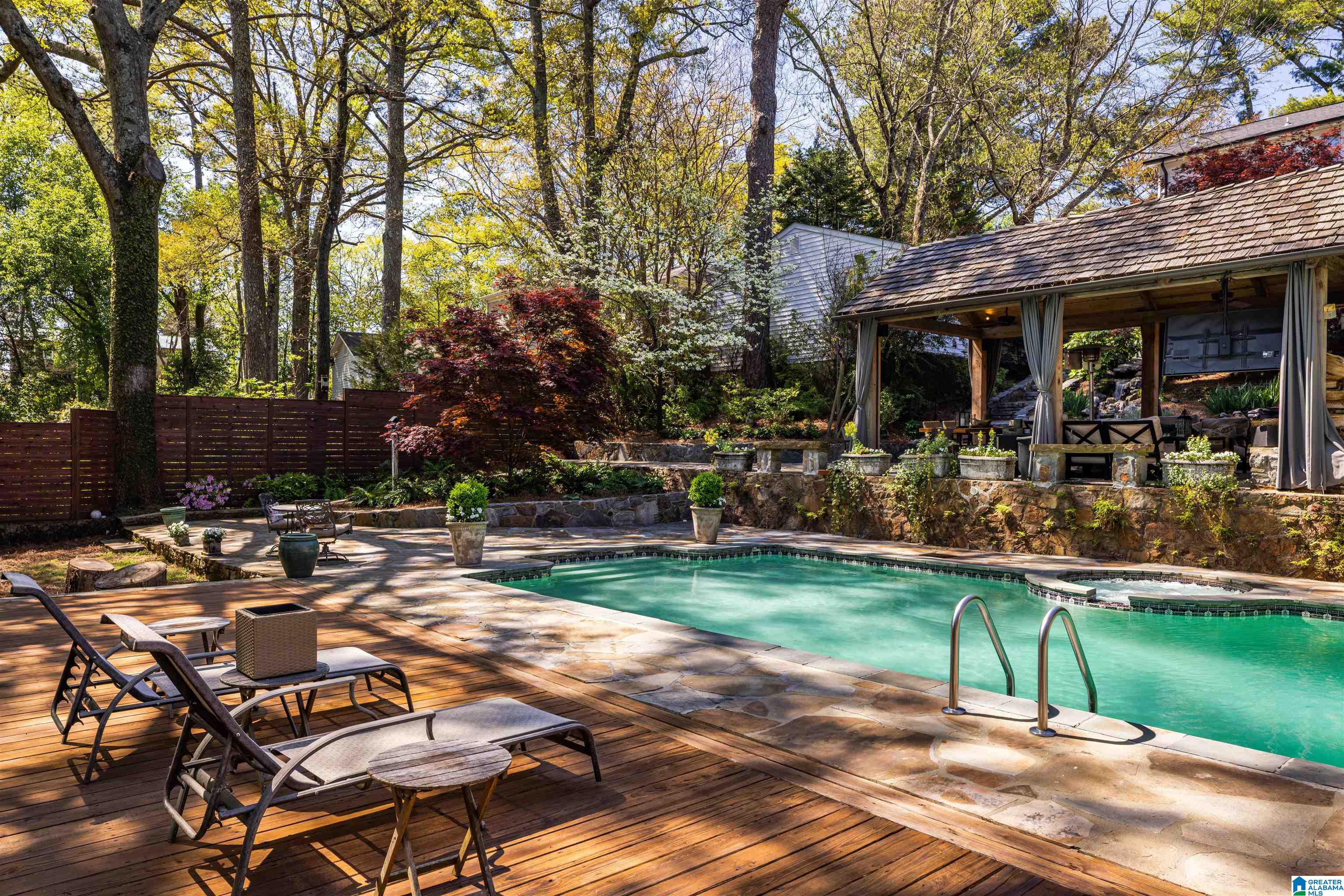 Tucked away on a quiet street in the heart of Edgewood, this charming Homewood home for sale offers the perfect blend of character, comfort, and convenience. Enjoy gleaming hardwood floors, a cozy wood-burning fireplace, and a light-filled kitchen with stainless steel appliances, gas cooktop, double ovens, and a coffee nook. The main level features three bedrooms, a full bath, and a sunny sitting area. Upstairs, the primary suite includes hardwood floors, a spa-like marble bath with soaking tub, walk-in shower, and custom closet. The finished basement is perfect for entertaining with deck access, a full bath, and laundry. Step outside to a private backyard oasis with a pool, hot tub, covered fireplace, and stone waterfall. This Edgewood retreat w/a view sits on nearly half an acre—just minutes to UAB, Edgewood Elementary, Homewood Library, Edgewood Park, and favorites like Saw’s BBQ, Homewood Gourmet and Little Donkey. Don't miss this rare offering for those relocating to Homewood, AL.