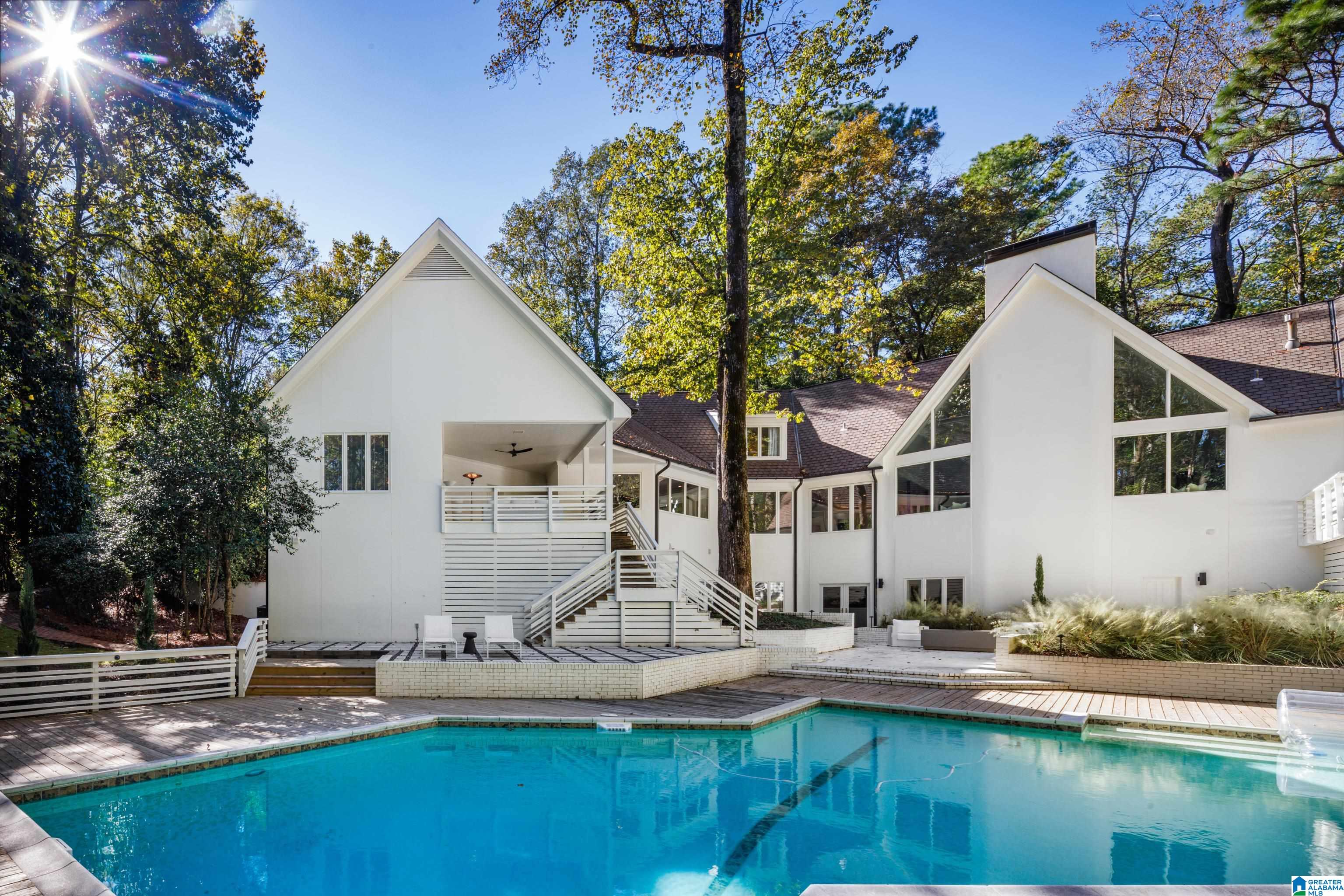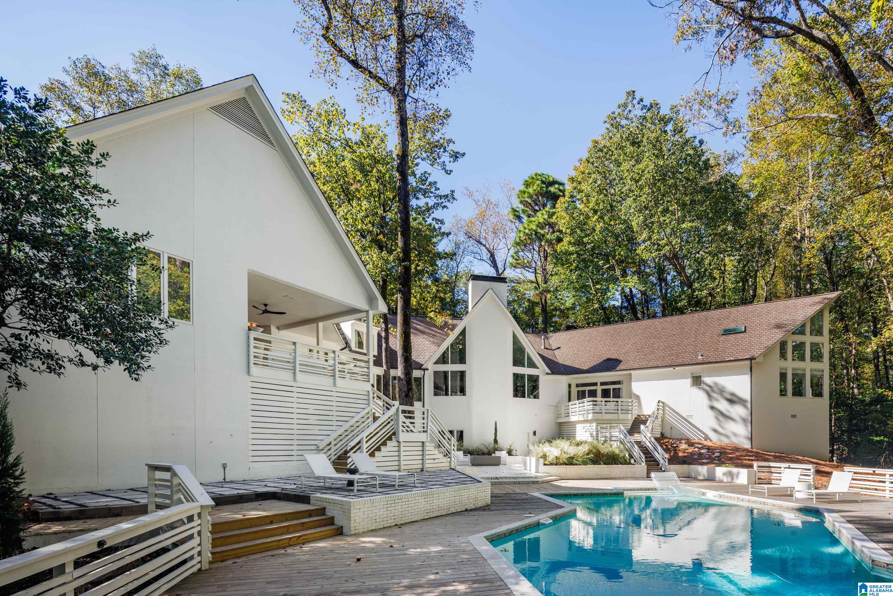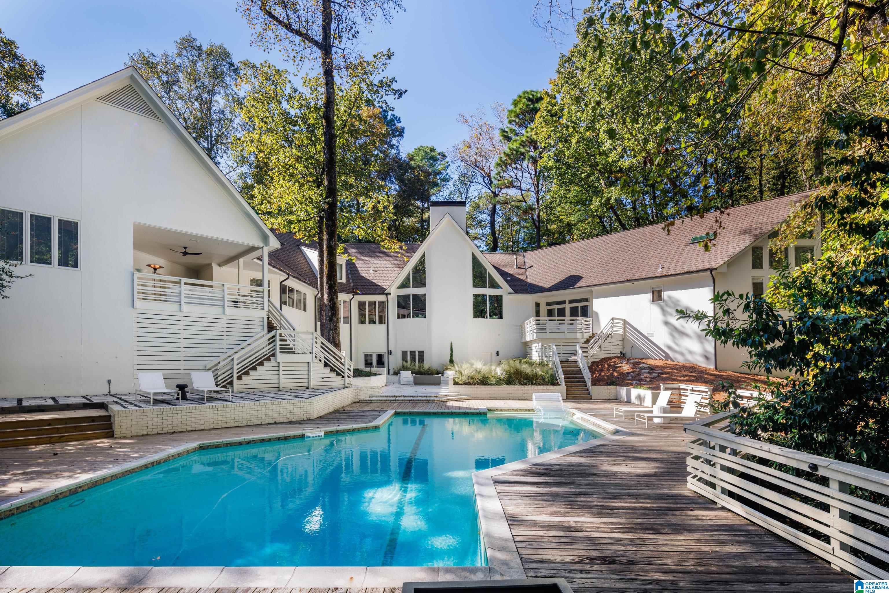 Fabulous Mountain Brook estate of 2+ acres with a 4 car Garage in the Abingdon neighborhood. The Home boasts Large Rooms with cathedral ceilings & sits on a cul-de-sac - perfect for entertaining. Impressive European Kitchen with Arrital Italian cabinetry, calacatta marble and German MIELE appliances overlook the Pool surrounded by natural landscape. 2025 Carrier HVAC & 2025 Tankless Hot Water Heater, 2025 Gutters, Pool is gunite, 2025 pump & Polaris, 2025 Exterior & Interior Paint, brick woodburning gas fireplace. The Master Bedroom & Bath boast tall ceilings, 2 personal Bath suites, 2 walk-in closets, a gas fireplace & private Covered Porch. Adjacent to the Kitchen is another Covered Porch. Another Bedroom Suite & Full Bath with a covered walkway is adjacent to the Kitchen. Upstairs: 2 large light filled Bedrooms & 2 Full Baths. The Daylight Basement has 2 Full Baths, a Bedroom, a Family Room, an elegant Bar & a new Zline ice maker & minifridge. New Privacy Fence in Backyard.