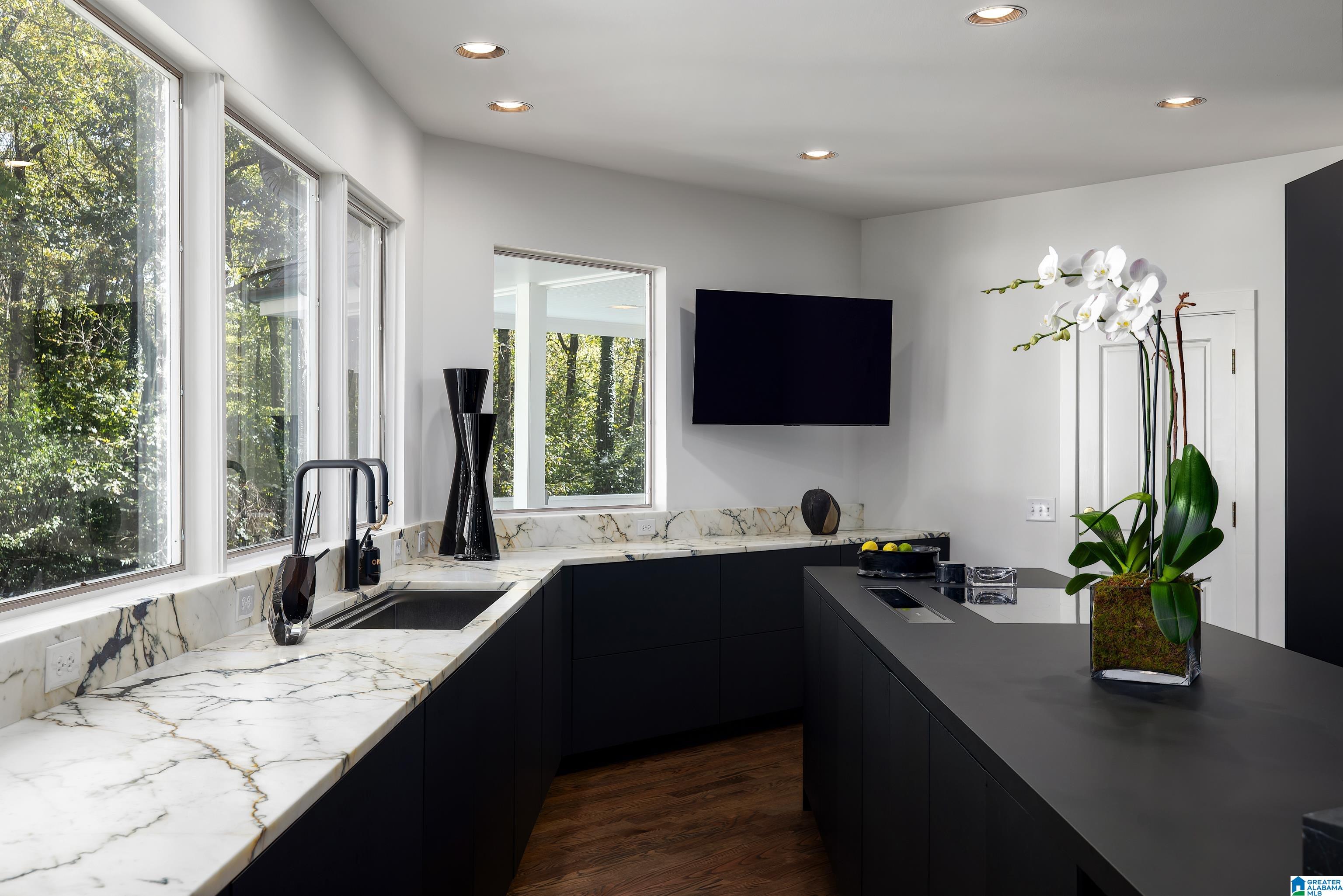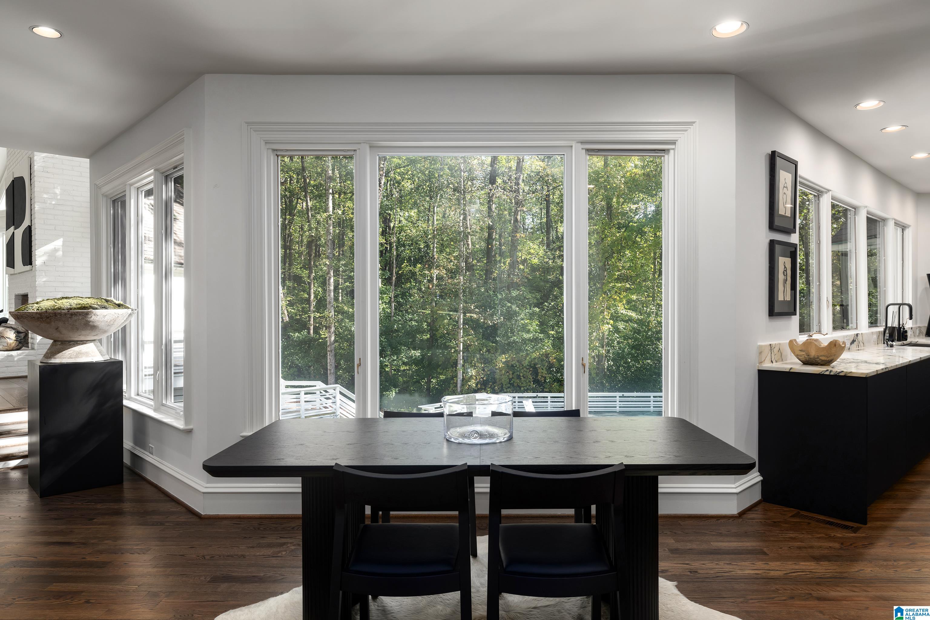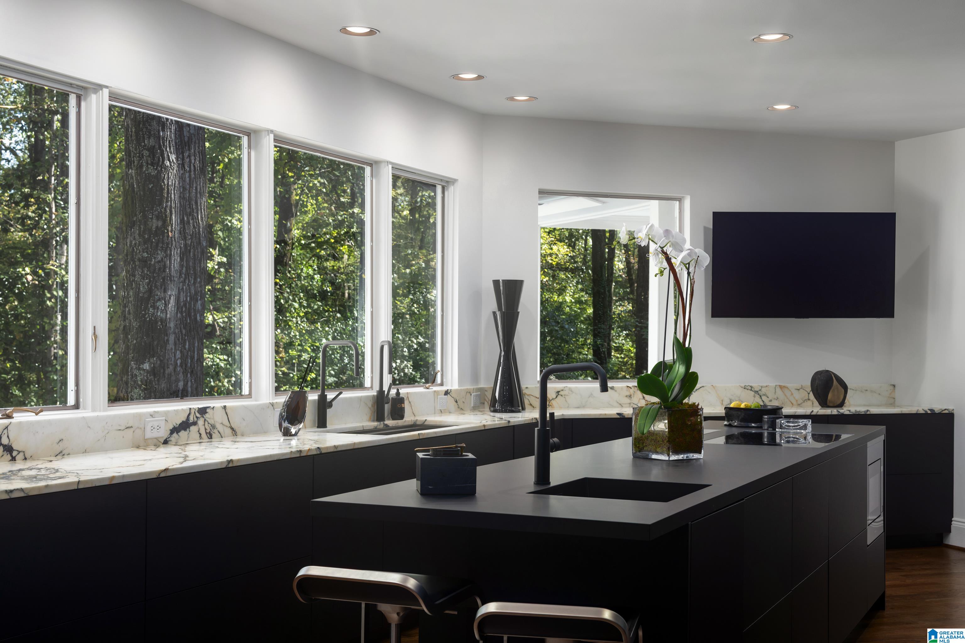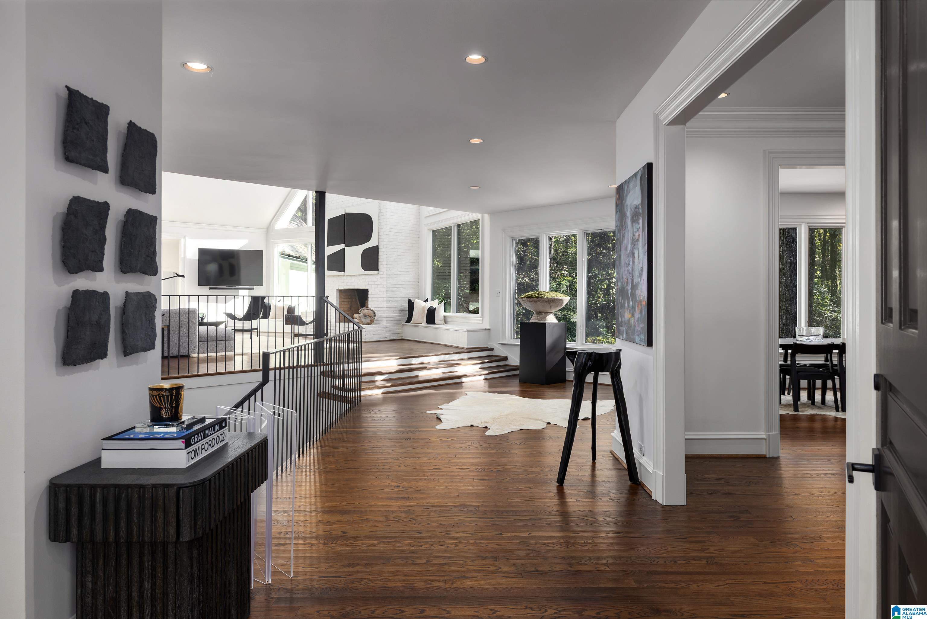 Fabulous Mountain Brook estate of 2+ acres with a 4 car Garage in the Abingdon neighborhood. The Home boasts Large Rooms with cathedral ceilings & sits on a cul-de-sac - perfect for entertaining. Impressive European Kitchen with Arrital Italian cabinetry, calacatta marble and German MIELE appliances overlook the Pool surrounded by natural landscape. 2025 Carrier HVAC & 2025 Tankless Hot Water Heater, 2025 Gutters, Pool is gunite, 2025 pump & Polaris, 2025 Exterior & Interior Paint, brick woodburning gas fireplace. The Master Bedroom & Bath boast tall ceilings, 2 personal Bath suites, 2 walk-in closets, a gas fireplace & private Covered Porch. Adjacent to the Kitchen is another Covered Porch. Another Bedroom Suite & Full Bath with a covered walkway is adjacent to the Kitchen. Upstairs: 2 large light filled Bedrooms & 2 Full Baths. The Daylight Basement has 2 Full Baths, a Bedroom, a Family Room, an elegant Bar & a new Zline ice maker & minifridge. New Privacy Fence in Backyard.