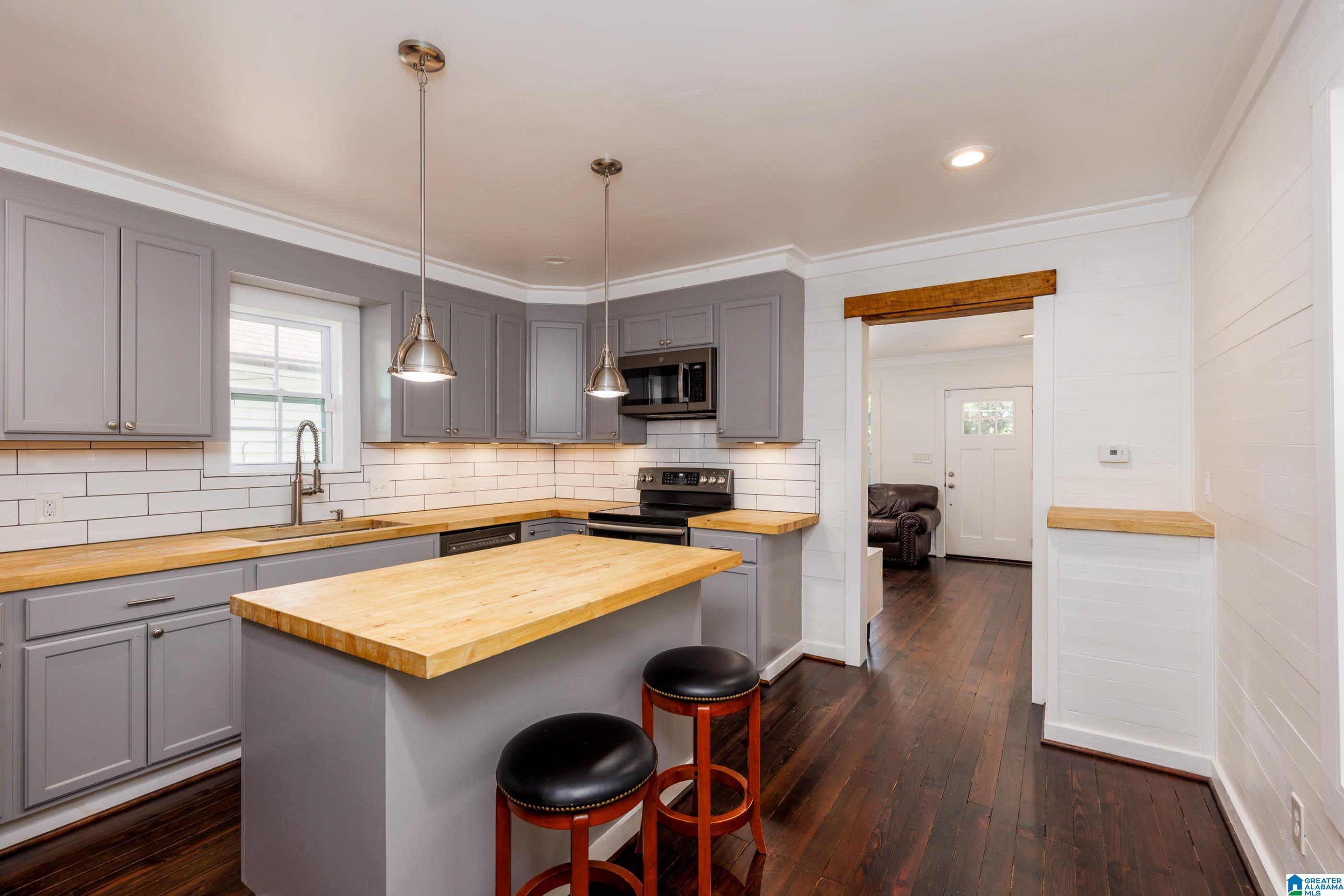 This Homewood gem packs a lot of punch! Every inch is beautifully designed with thoughtful, high-end finishes—from the warm pine floors to the efficient layout that maximizes every room. The home includes a cozy living area, a full kitchen with designer touches, and a stackable laundry that saves space without compromise. The second bedroom is perfectly structured to double as a home office if that’s a better fit for your lifestyle. Have peace of mind with a updated/replaced roof, water heater, windows, plumbing and electrical. Enjoy a rare chance at privacy with only one neighbor and a vacant lot next door, enjoy a fenced backyard, a firepit and a dog door for your furry friends. Stylish, functional, and full of charm—this home delivers big living in a small footprint just minutes from downtown Homewood.