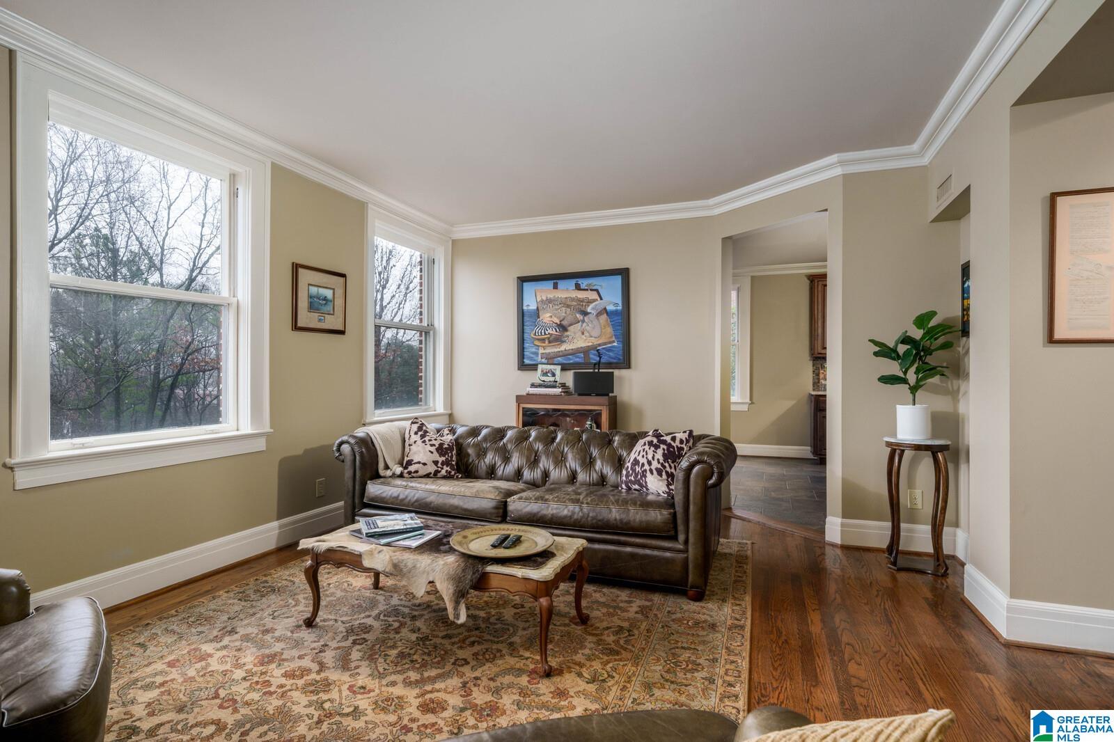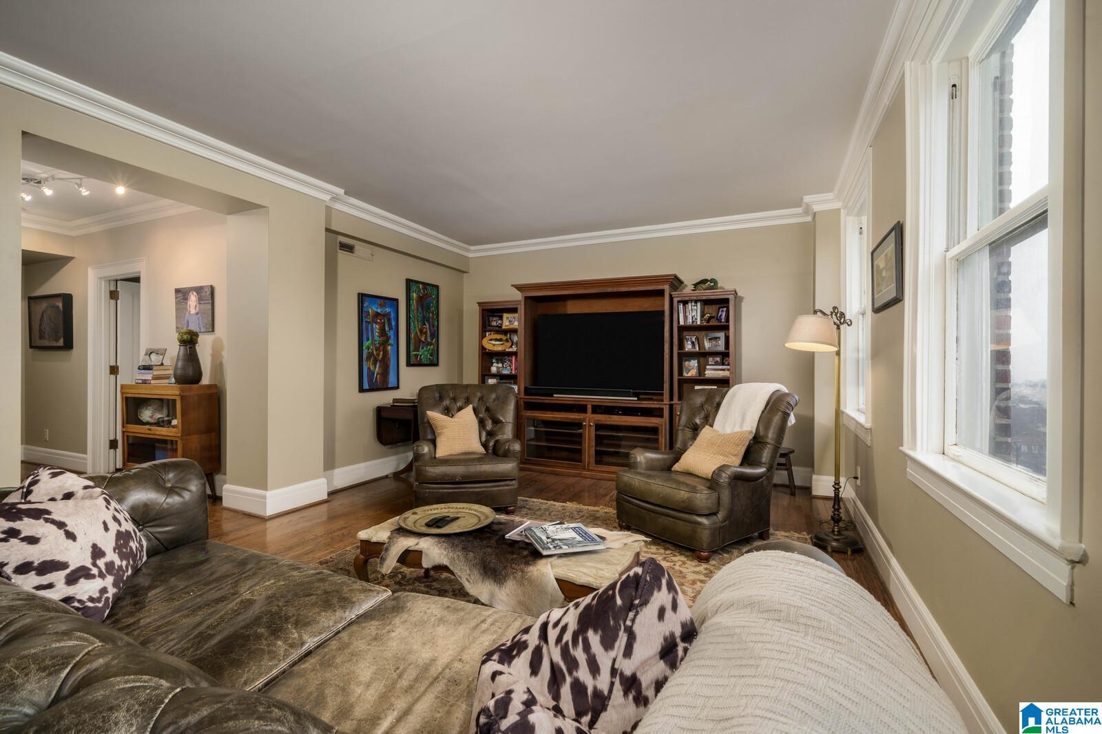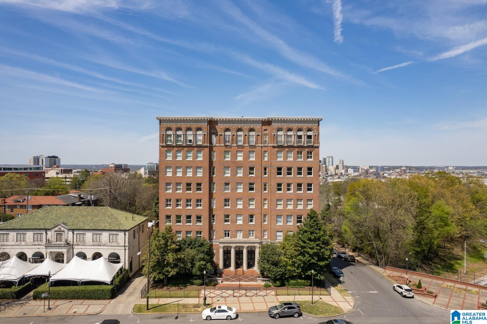 Historic Highland Plaza offers 1920's charm in a perfect location! This residence offers city views and an excellent floor plan. The marble tiled entry leads to the large light filled living room. Formal dining room opens to the renovated kitchen with solid wood cabinetry, generous amount of counter space (stone) and stainless steel appliances. Primary bedroom suite offers two closets (one walk in) and renovated bath trimmed in neutral tile with deep jetted soaking tub. The spacious home office (with city view) is the perfect flex space. Spacious guest bedroom with large walk in closet is located near a full hall bath with tub/shower. Real hardwood floors, original doors and mill work all add to the charm. The garage for this residence is in a premium location (no steps). Enjoy use of the recently renovated lobby, indoor pool, gym and rooftop viewing deck. Truly an excellent value. Steps to dinner at Bottega and minutes to UAB, downtown and city parks.