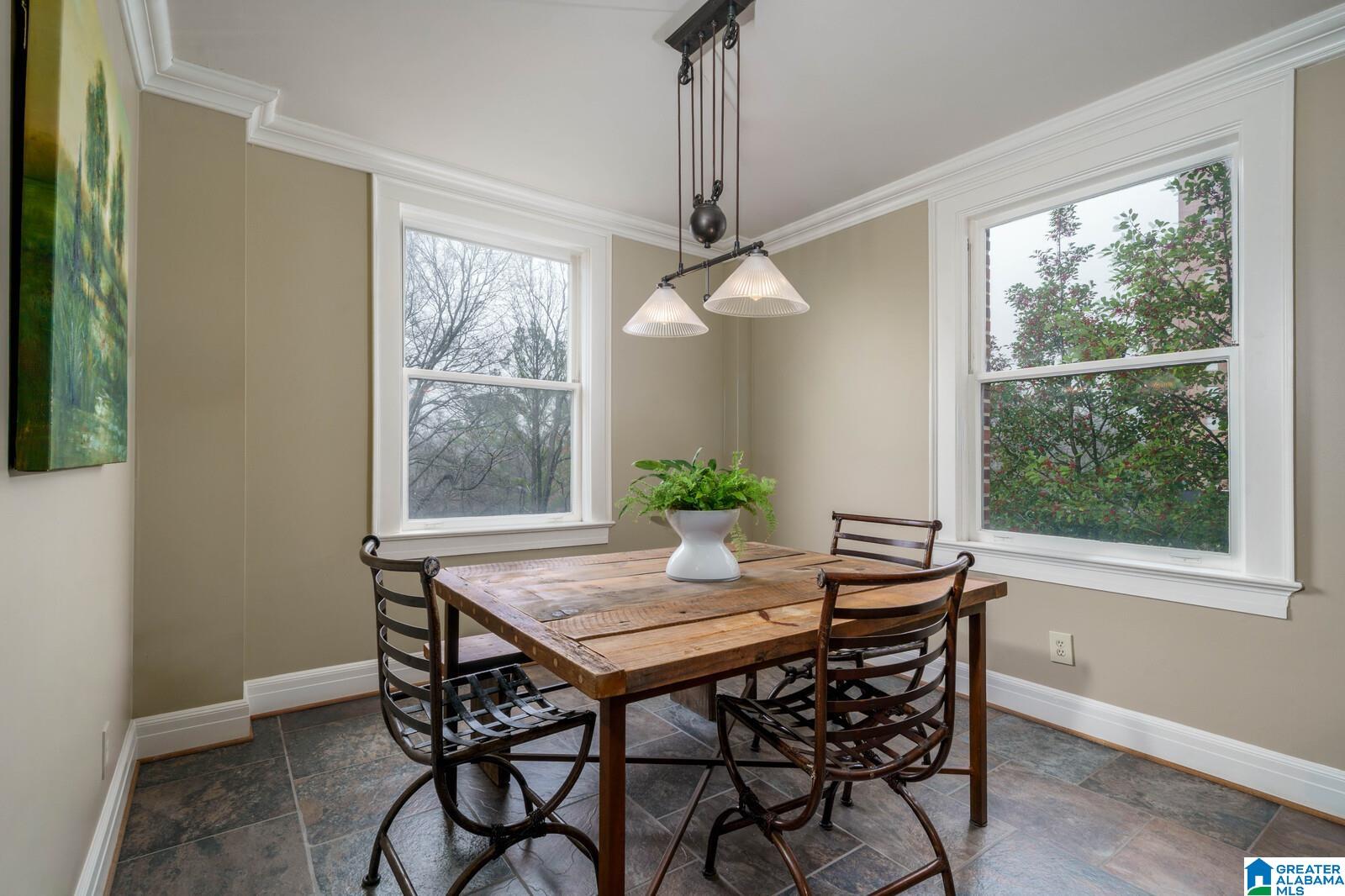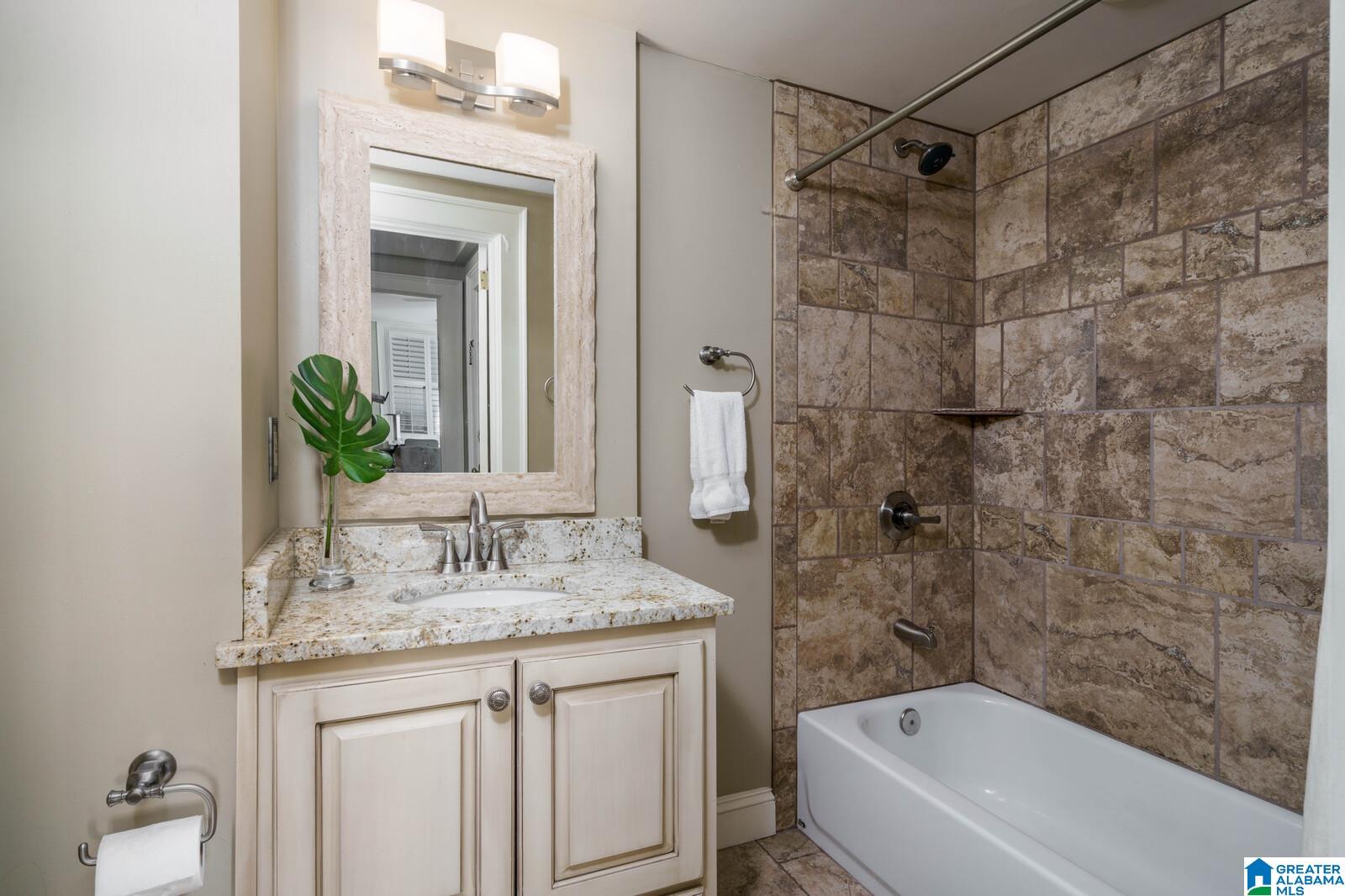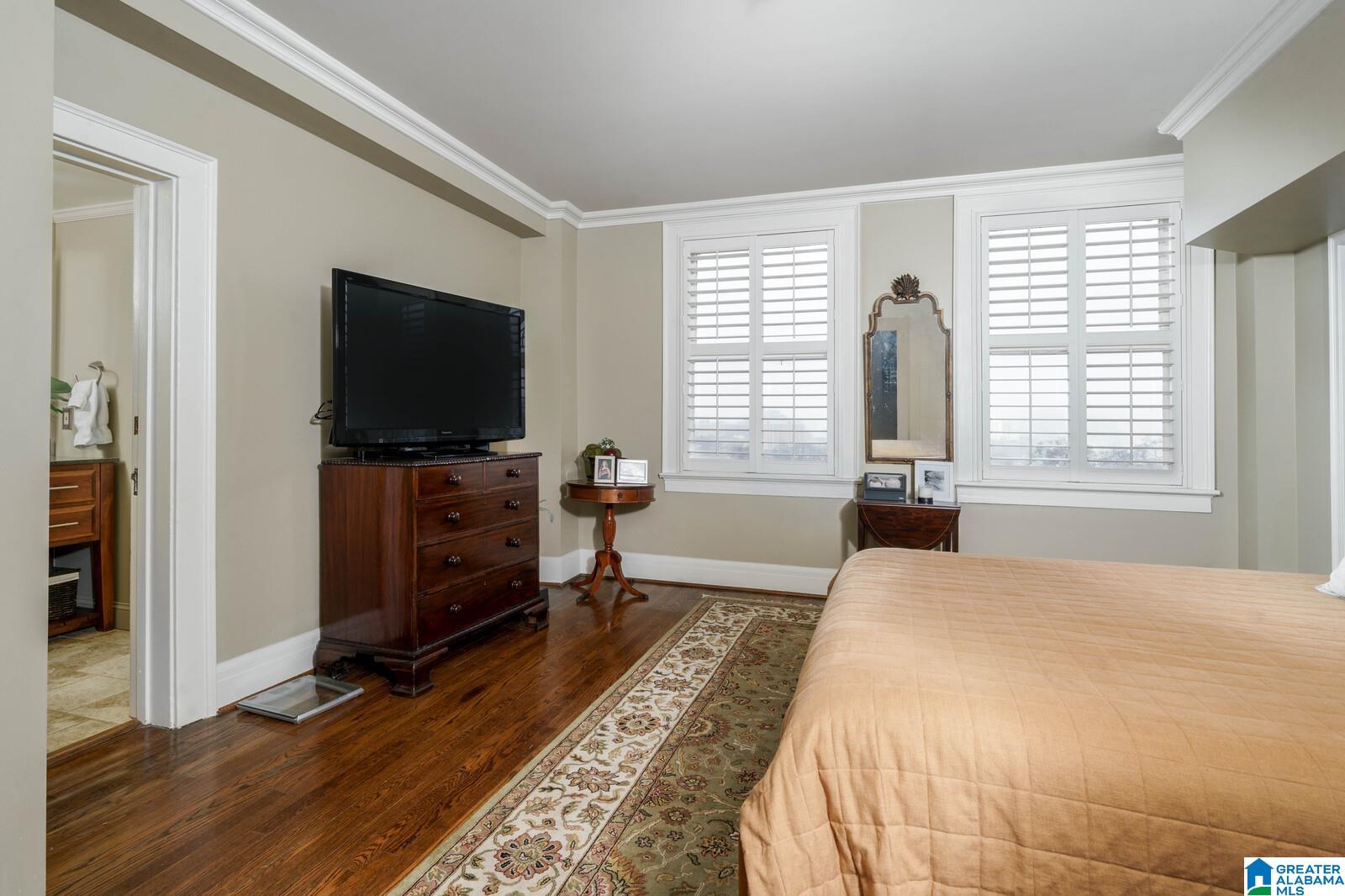 Historic Highland Plaza offers 1920's charm in a perfect location! This residence offers city views and an excellent floor plan. The marble tiled entry leads to the large light filled living room. Formal dining room opens to the renovated kitchen with solid wood cabinetry, generous amount of counter space (stone) and stainless steel appliances. Primary bedroom suite offers two closets (one walk in) and renovated bath trimmed in neutral tile with deep jetted soaking tub. The spacious home office (with city view) is the perfect flex space. Spacious guest bedroom with large walk in closet is located near a full hall bath with tub/shower. Real hardwood floors, original doors and mill work all add to the charm. The garage for this residence is in a premium location (no steps). Enjoy use of the recently renovated lobby, indoor pool, gym and rooftop viewing deck. Truly an excellent value. Steps to dinner at Bottega and minutes to UAB, downtown and city parks.