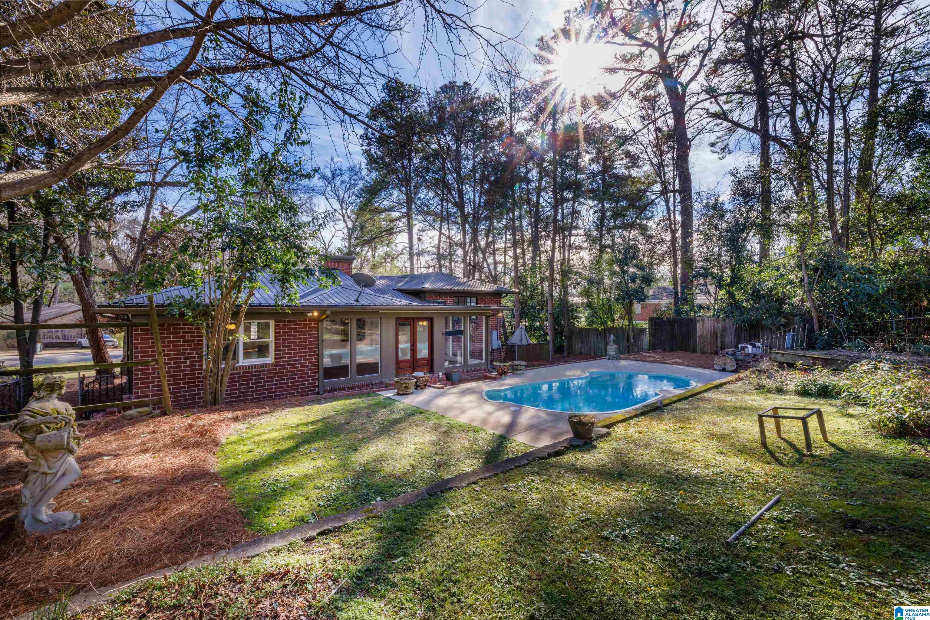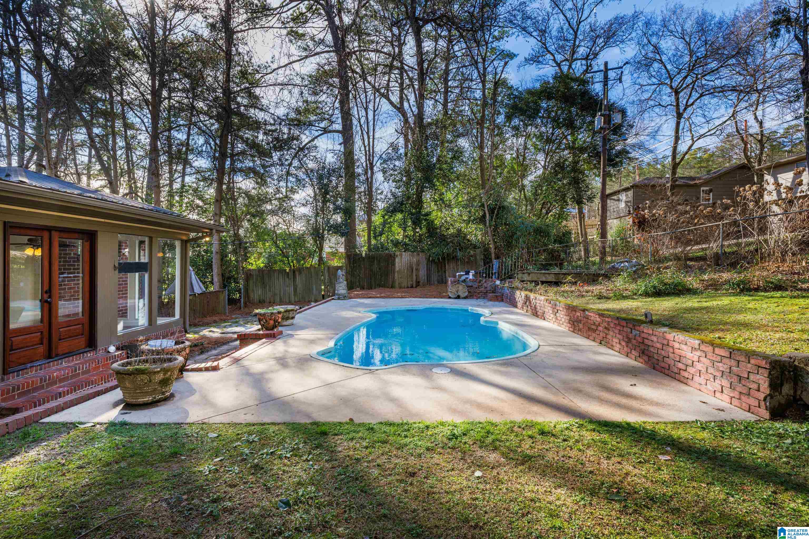 Charming brick home full of potential, ideally located on one of Birmingham’s most well-known streets! Just minutes from everything the city has to offer, this home presents an incredible opportunity in a prime setting. Inside, natural hardwood floors flow throughout, beginning in the light-filled living room with a cozy fireplace that opens to the formal dining area. The functional kitchen offers ample cabinetry & counter space, all while overlooking a glass-enclosed sunroom that fills the space with natural light & offers peaceful views of the serene pool. The primary bedroom, located across from the sunroom, features an ensuite bath for a private retreat. Two additional spacious bedrooms share a well-appointed full bathroom—one with floor-to-ceiling storage & the other with beautiful glass doors that open to a balcony. Outside, enjoy the crystal-clear pool surrounded by manicured yard & a one-car garage, all situated on a picturesque tree-lined lot. Make this home your own today!