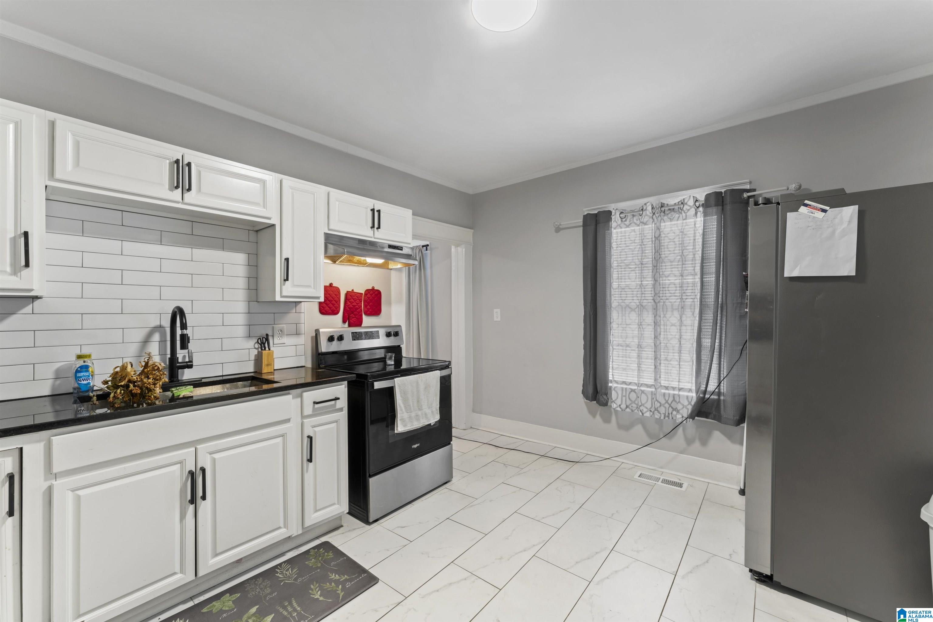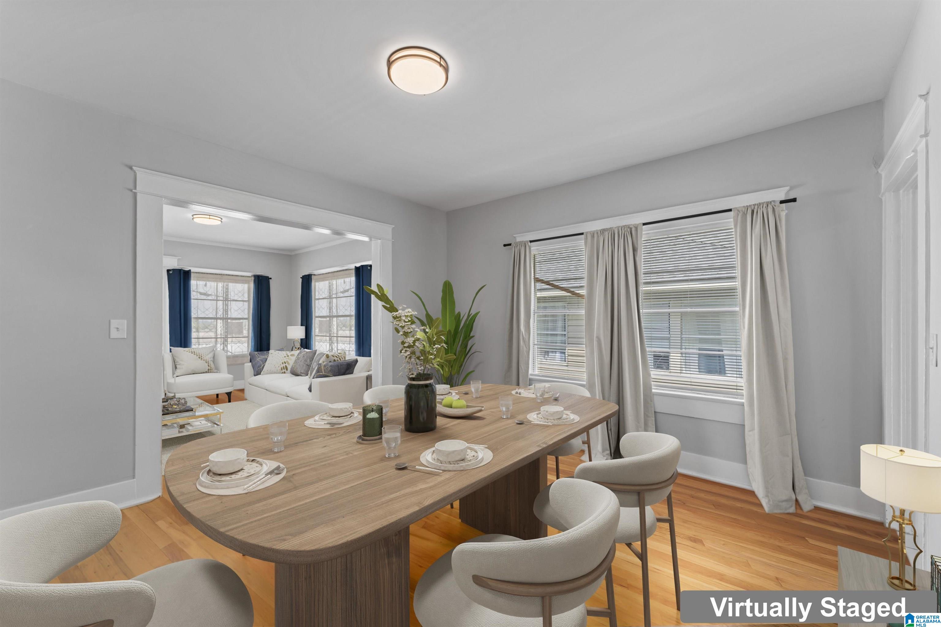 Charming Crestwood Bungalow! This fully renovated 2-bed, 2-bath home blends classic charm with modern updates. Step inside to find gleaming hardwoods throughout, a bright kitchen with white cabinetry, subway tile backsplash, and stainless appliances, plus a spacious dining room perfect for hosting. The master suite shines with a beautifully updated bath featuring dual sinks and a sleek walk-in glass shower. Every detail has been carefully refreshed—from the foundation to the roof—giving you peace of mind and low-maintenance living. Just minutes from Birmingham’s entertainment district, you’ll enjoy quick access to top dining, shopping, and nightlife. Whether you’re searching for your first home or an investment, this move-in-ready gem won’t last long.
