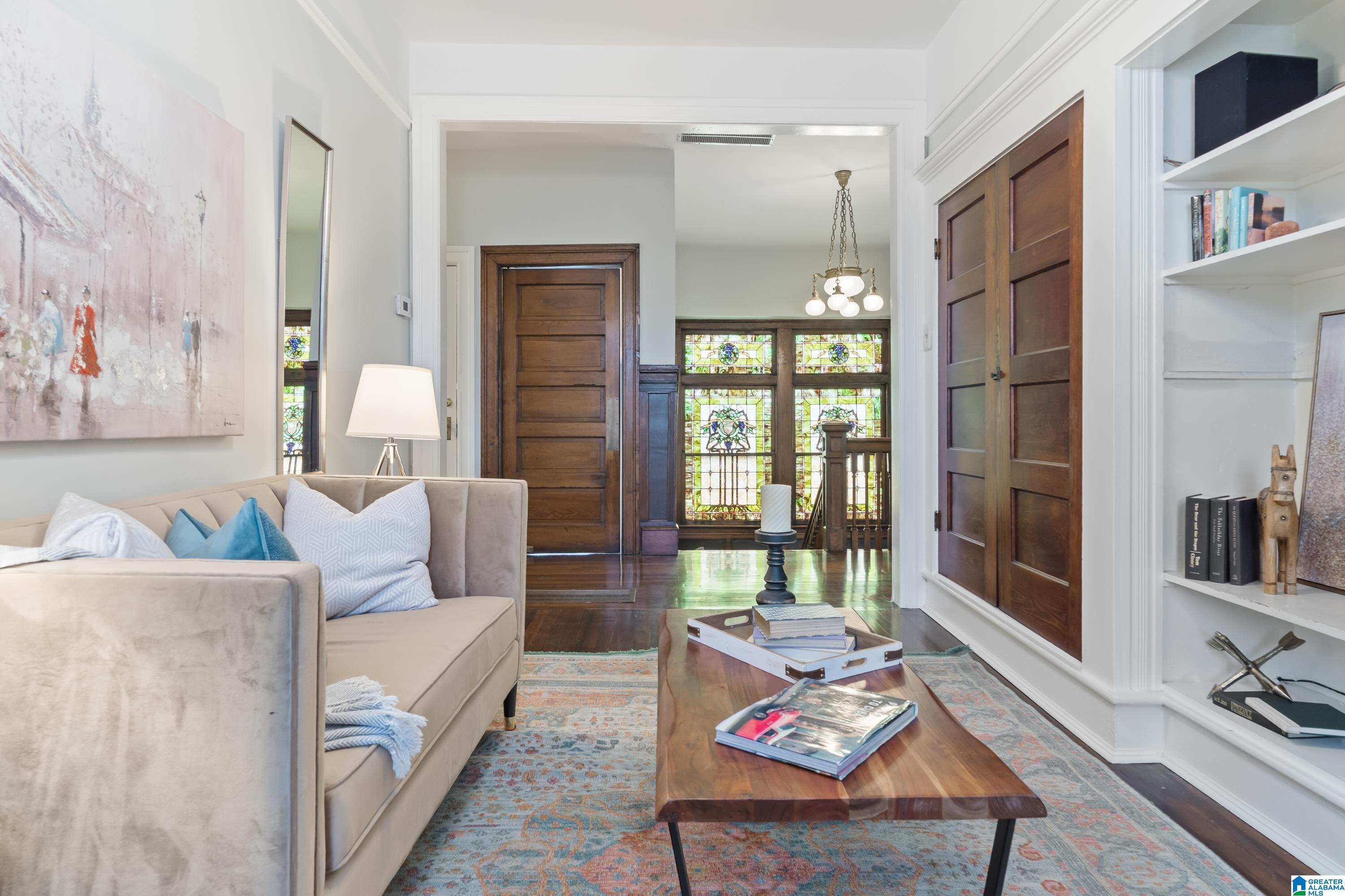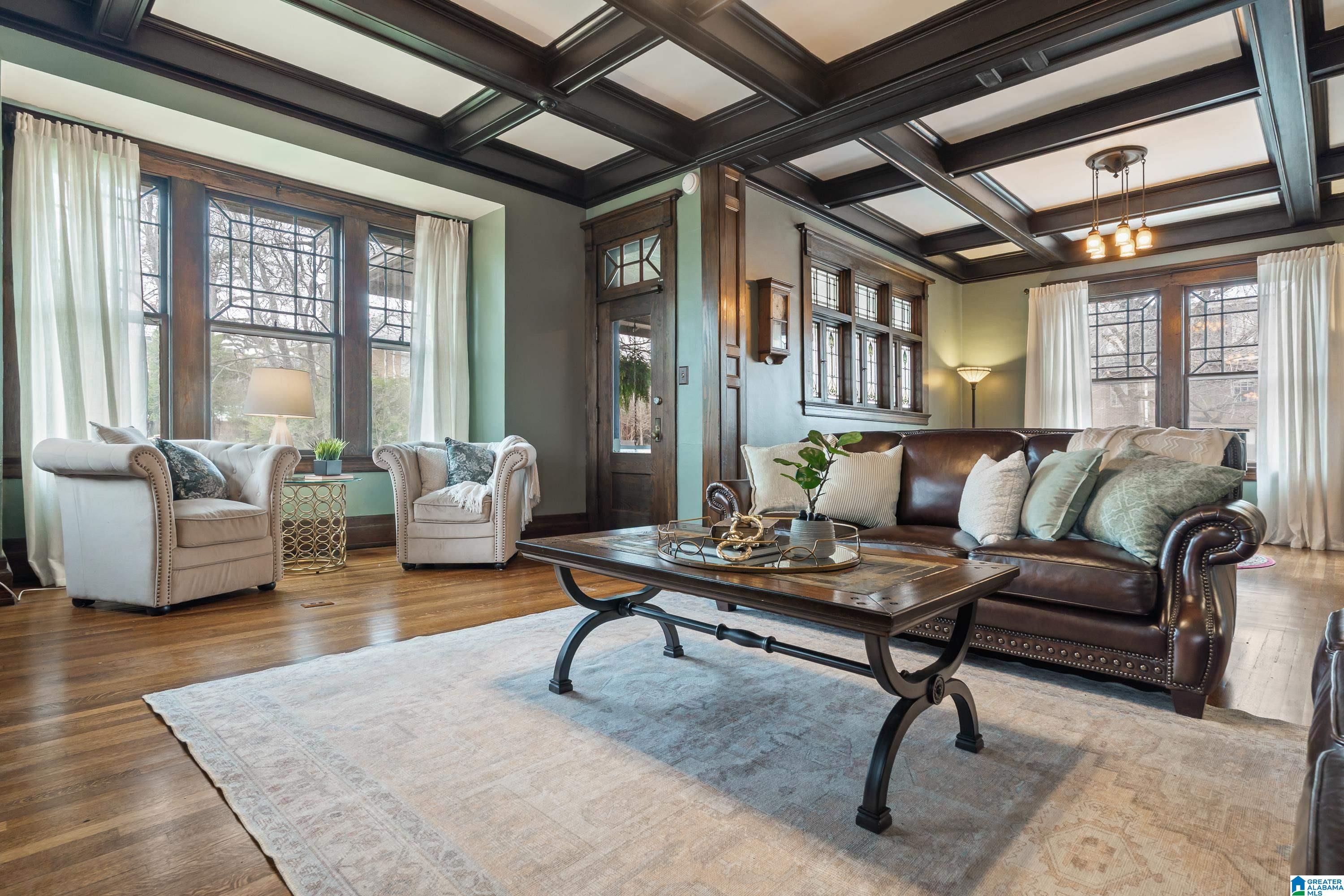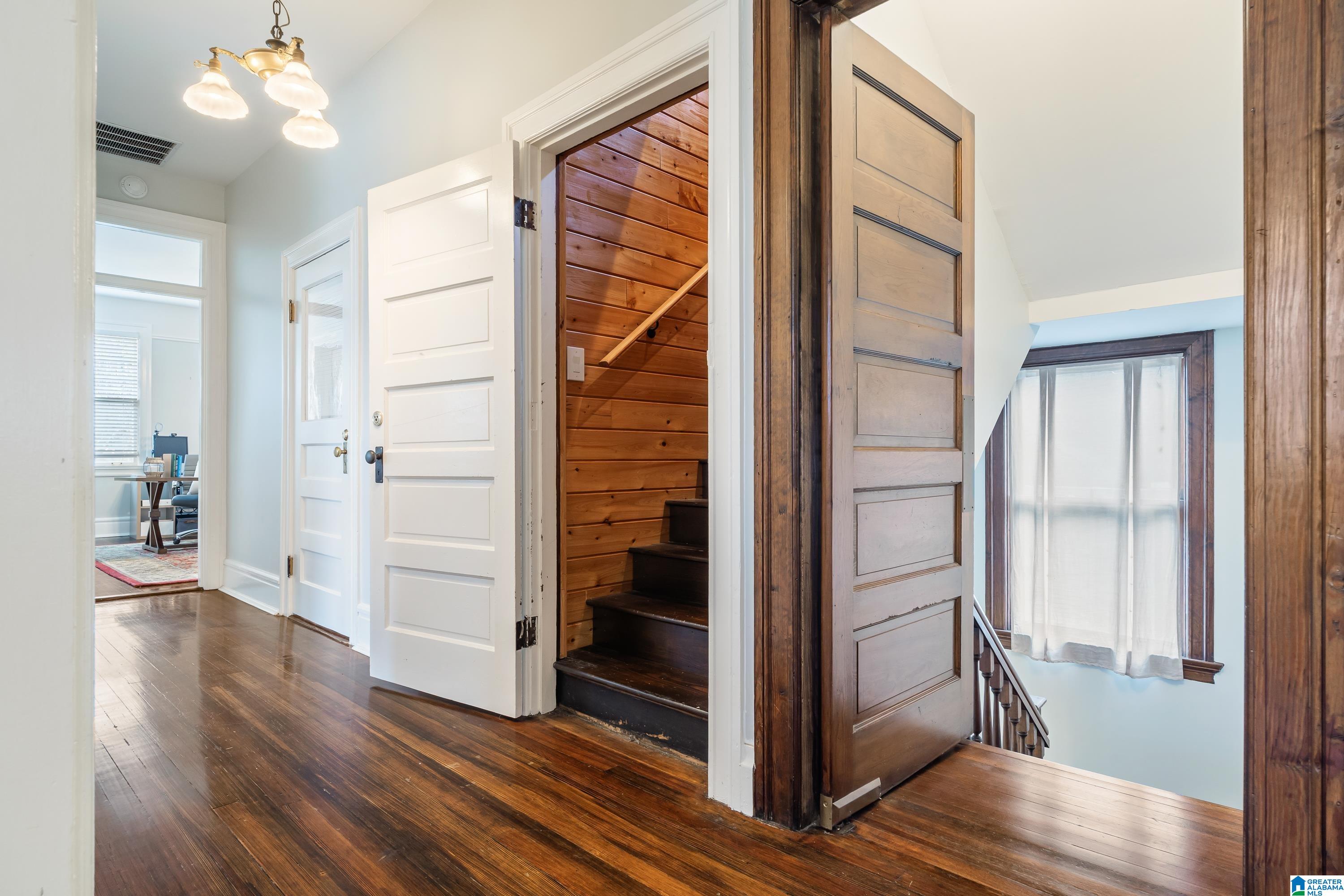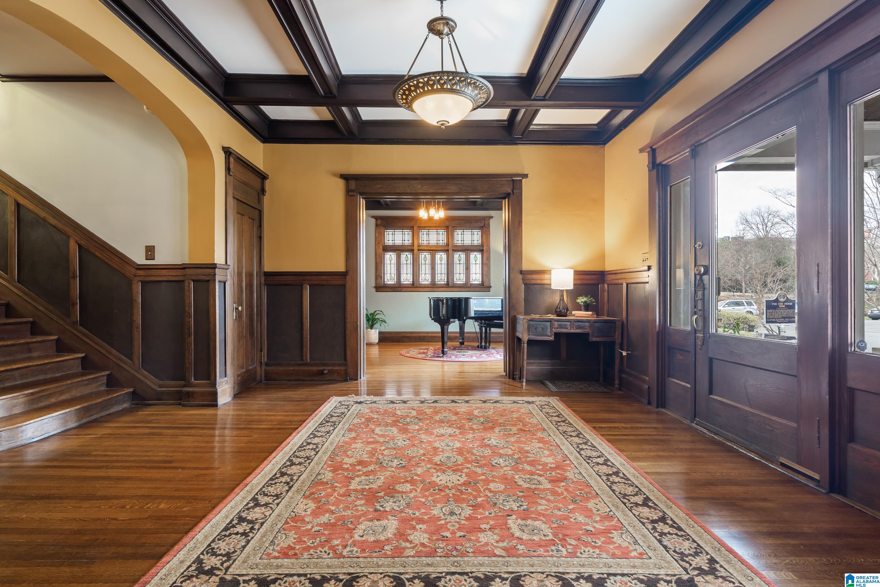 Welcome to the historic Coe House, built in 1908. A gracious entry w coffered ceilings & rich architectural details sets the tone, opening to formal living & dining rooms each anchored by its own fireplace. The inviting sunroom overlooks the side garden, while stained glass windows bathe the elegant stairwell in natural light. A charming butler’s pantry w glass-front cabinets leads into a fully renovated kitchen w tile flooring, SS appliances, island seating, & an oversized walk-in pantry. Just off the kitchen, you’ll find a lovely informal dining area. The comfortable primary suite features a spacious renovated bath w soaking tub & rainfall shower plus an expansive closet w W/D hookups. 3 additional bedrooms provide ample space for family or guests. The 3rd level is a true retreat, showcasing pine paneling, surround-sound multimedia projection equipment, mini bar, & a cozy sleeping loft w half bath. W its abundance of original features & timeless character, this remarkable home a gem!