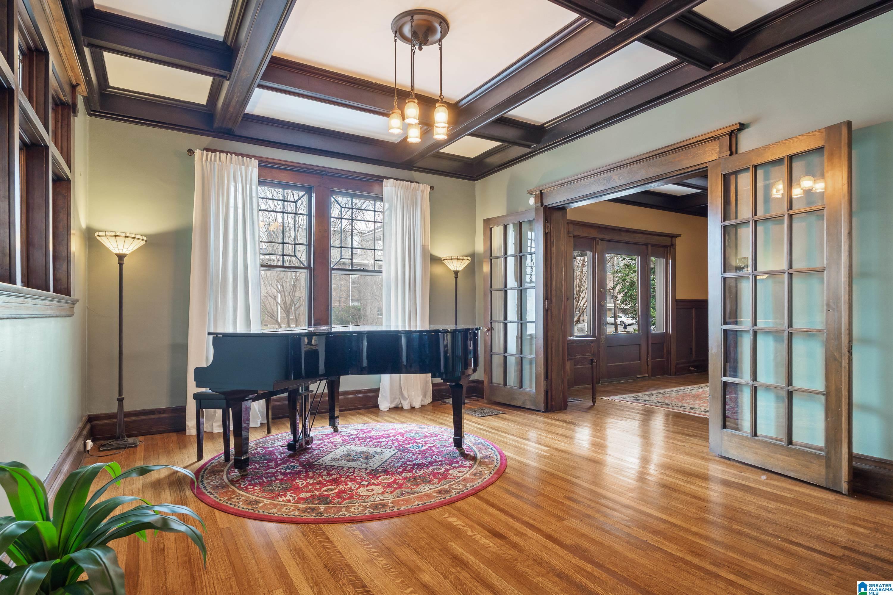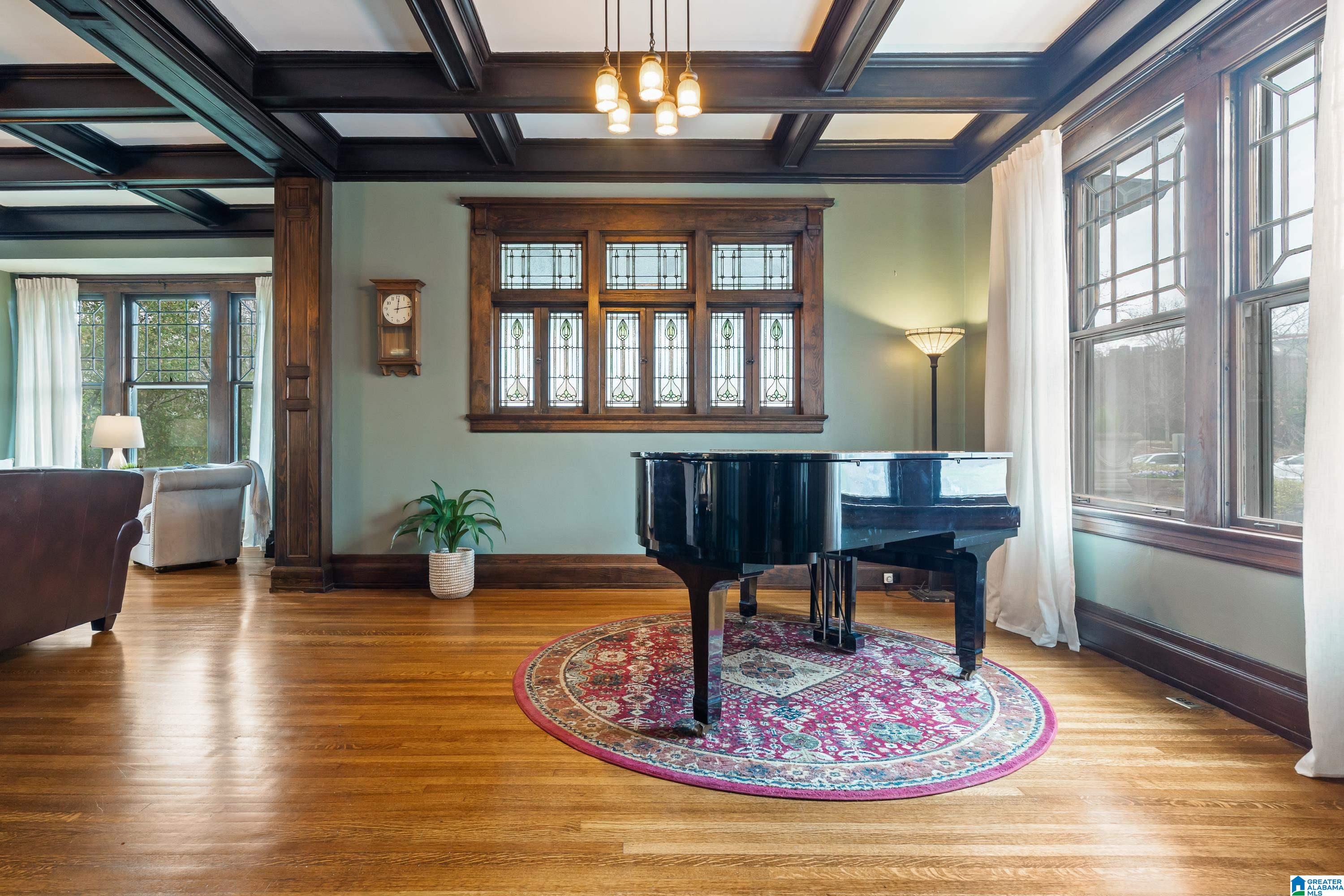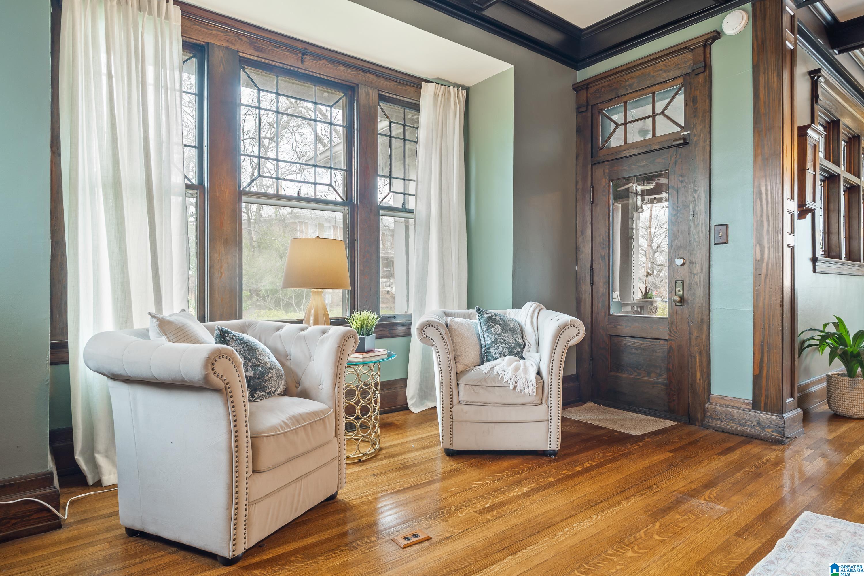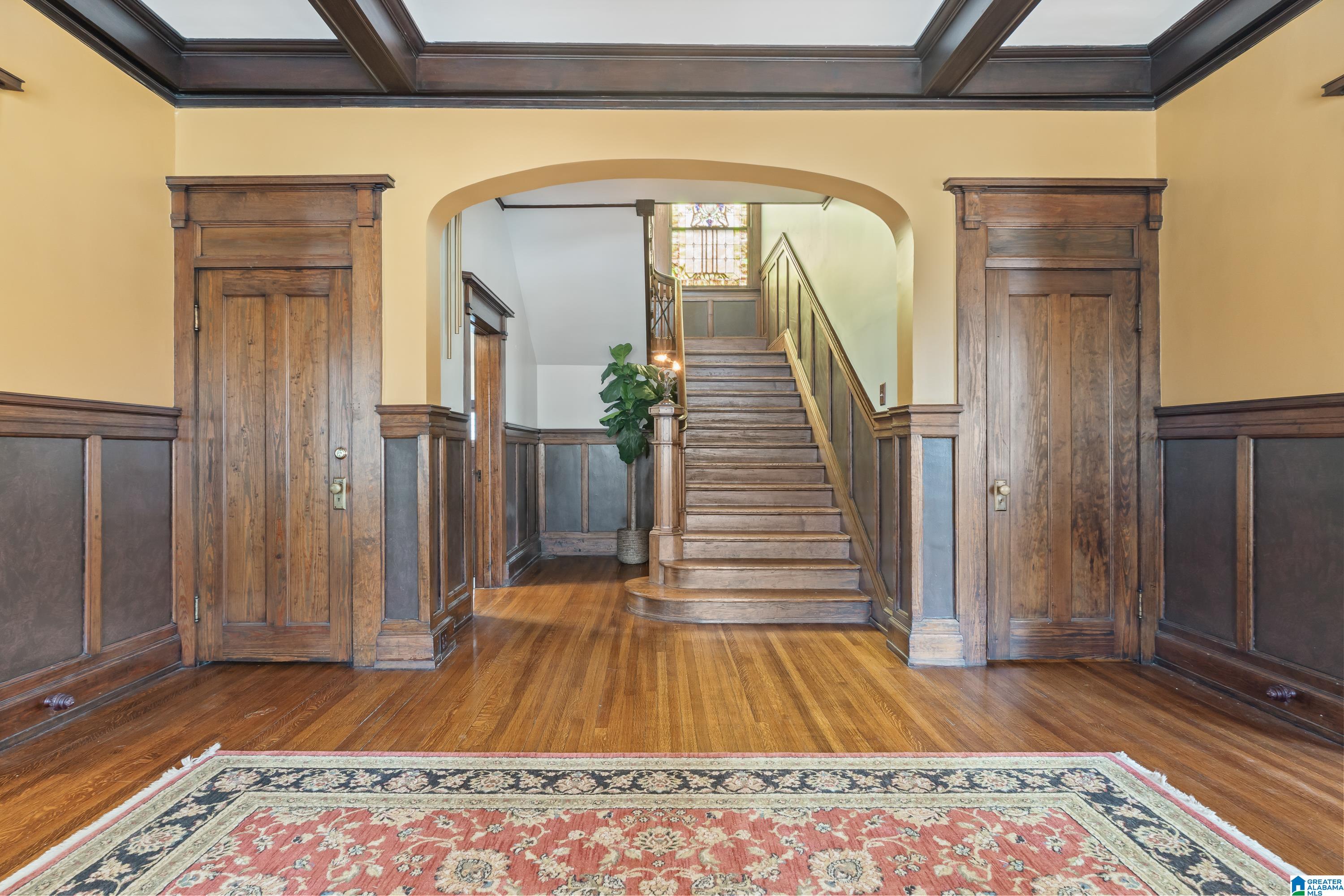 Welcome to the historic Coe House, built in 1908. A gracious entry w coffered ceilings & rich architectural details sets the tone, opening to formal living & dining rooms each anchored by its own fireplace. The inviting sunroom overlooks the side garden, while stained glass windows bathe the elegant stairwell in natural light. A charming butler’s pantry w glass-front cabinets leads into a fully renovated kitchen w tile flooring, SS appliances, island seating, & an oversized walk-in pantry. Just off the kitchen, you’ll find a lovely informal dining area. The comfortable primary suite features a spacious renovated bath w soaking tub & rainfall shower plus an expansive closet w W/D hookups. 3 additional bedrooms provide ample space for family or guests. The 3rd level is a true retreat, showcasing pine paneling, surround-sound multimedia projection equipment, mini bar, & a cozy sleeping loft w half bath. W its abundance of original features & timeless character, this remarkable home a gem!