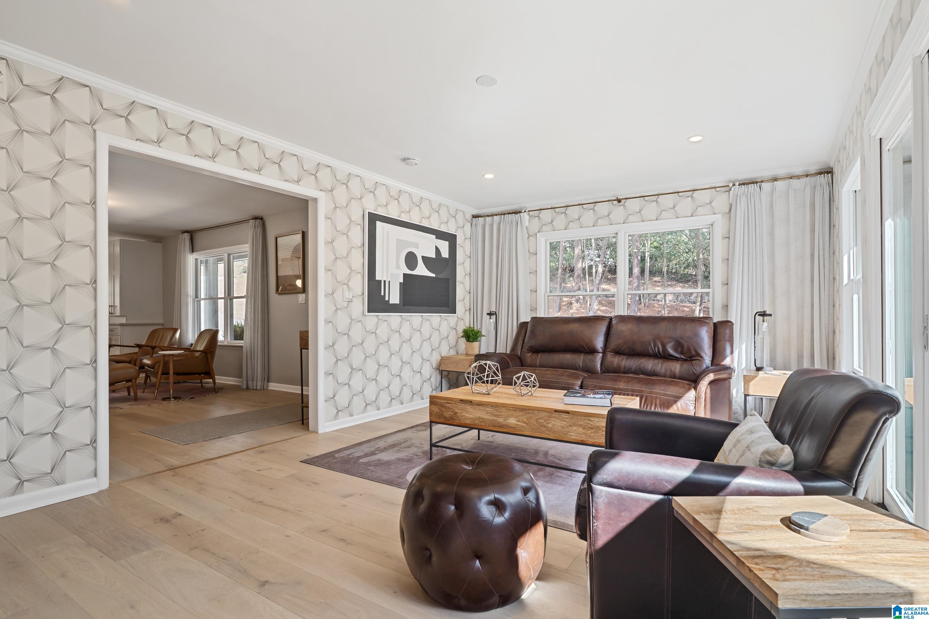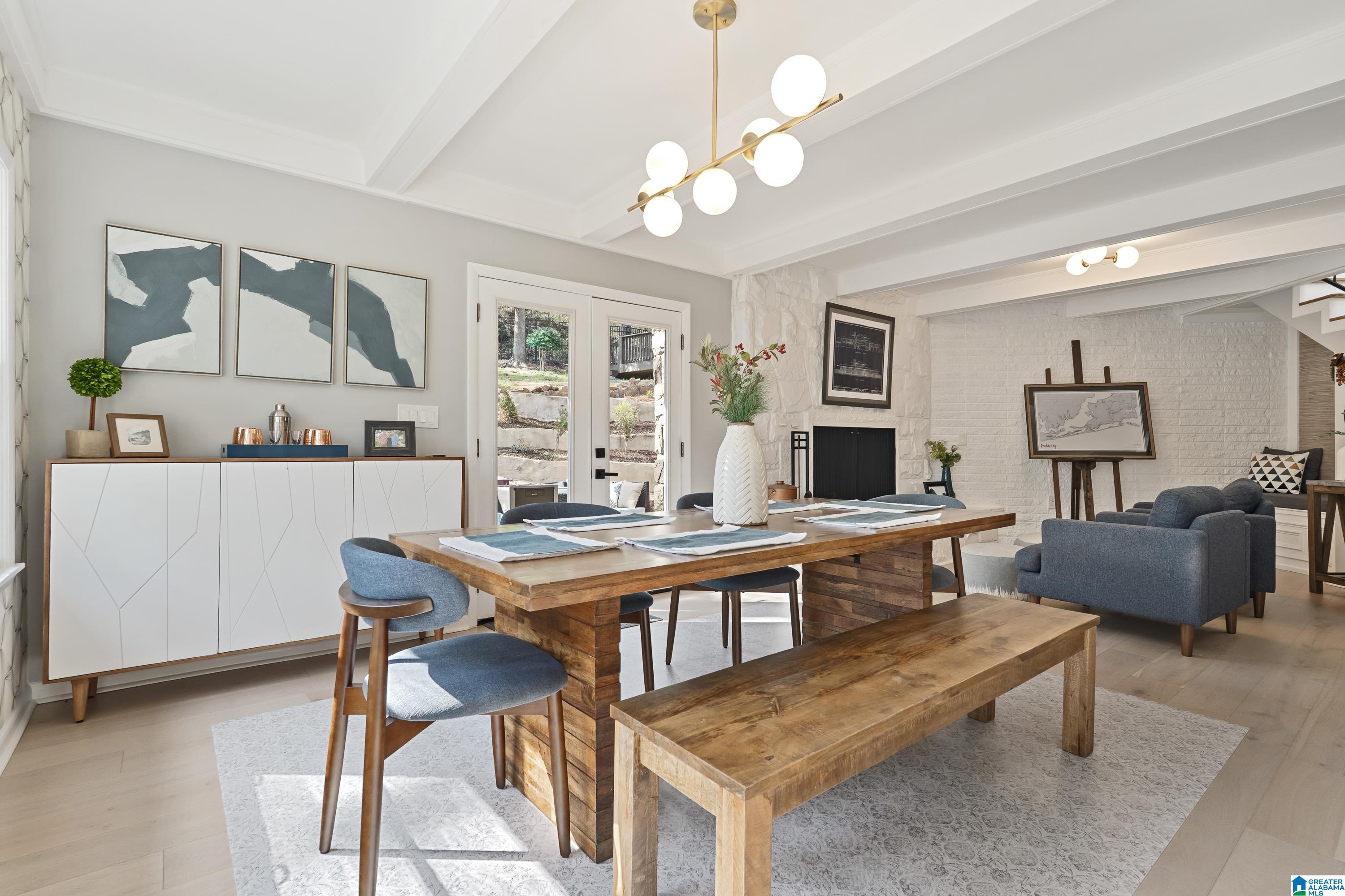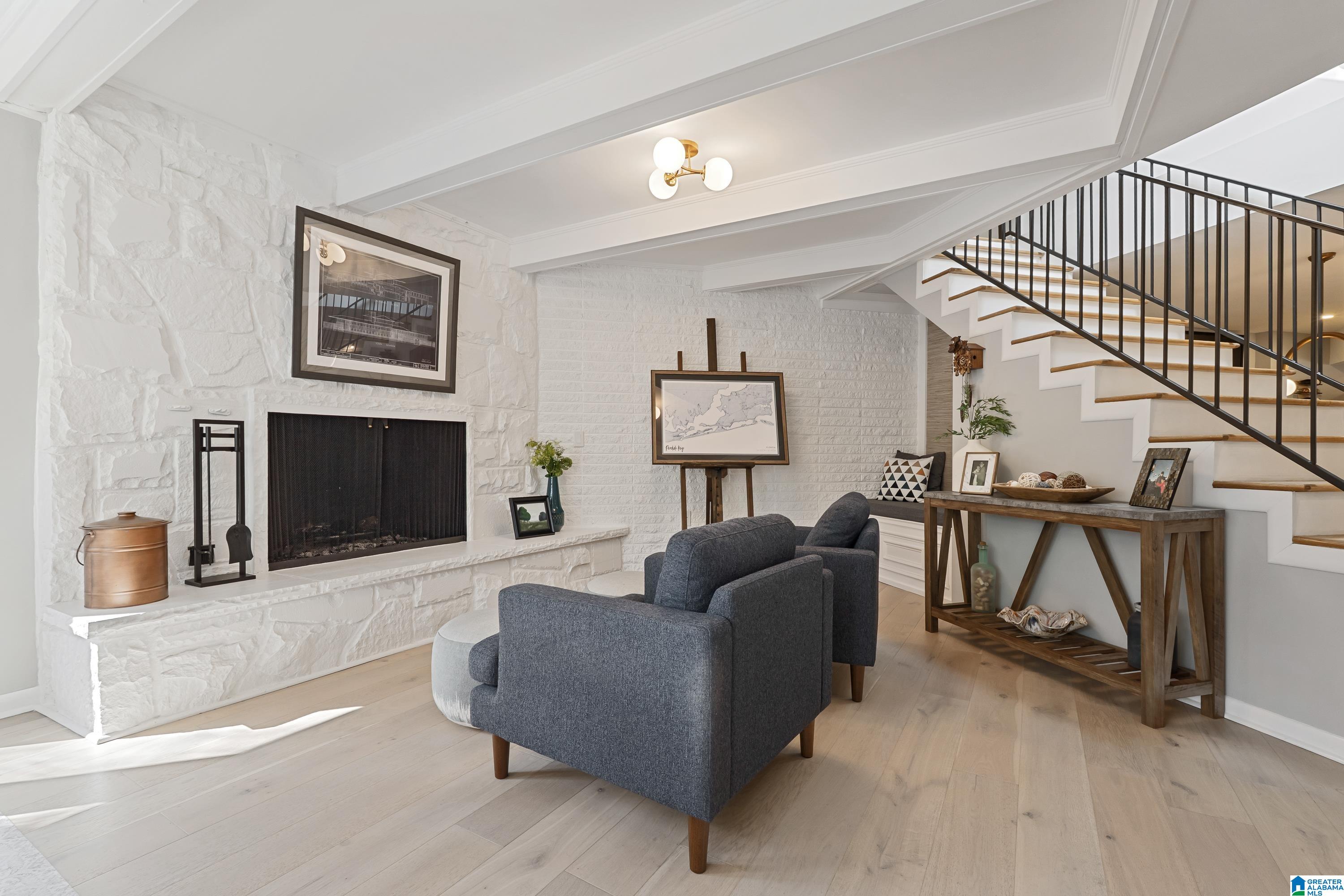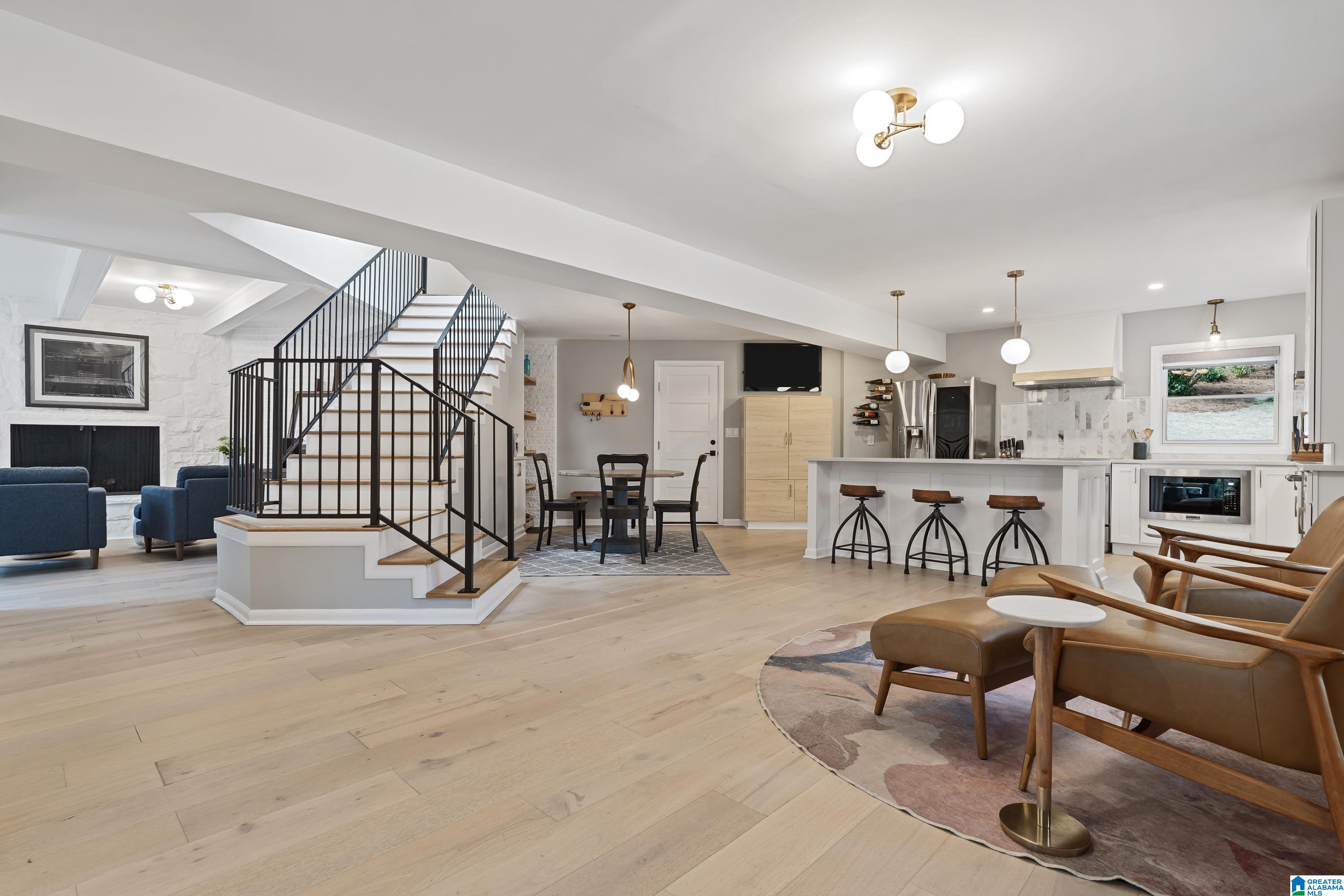 Full of character, this beautifully updated mid-century modern home is located on coveted Locksley Drive in Brookwood Forest. An architecturally striking staircase anchors the open main level, where the thoughtfully designed floor plan flows easily between multiple living & dining spaces. The kitchen features gorgeous quartz countertops, perfect for everyday living & entertaining. Upstairs, the primary suite offers two walk-in closets & a spa-like bath with soaking tub, separate shower, double vanity, and private water closet. Three additional bedrooms, two full baths, & a convenient laundry room complete the upper level. Enjoy a large, flat front yard along with multiple outdoor living areas ideal for relaxing or entertaining. The 2-car garage is heated & cooled with a mini-split, offering potential for additional living space. Ample storage is available with several rooms off the garage plus a recently added exterior storage building. The backyard is newly fenced for children & pets!