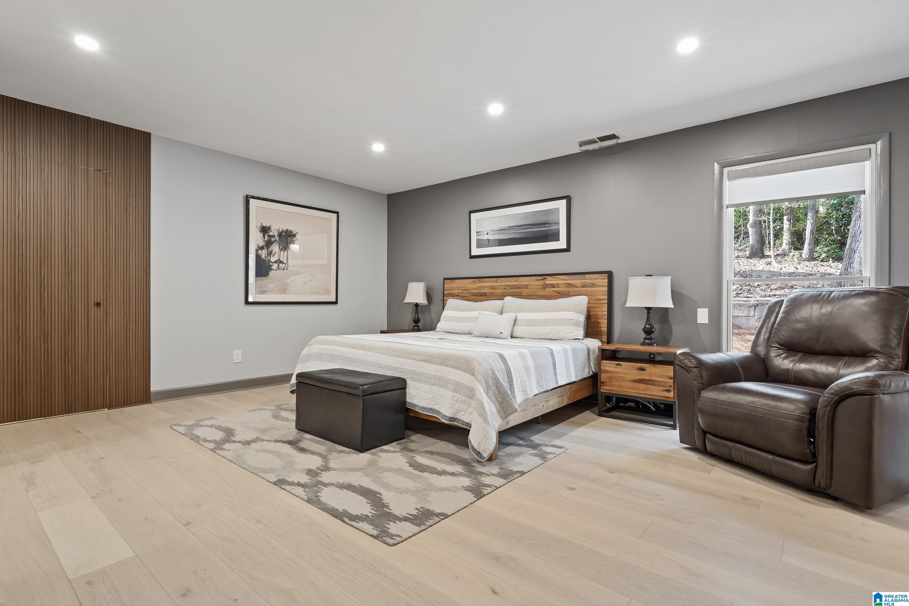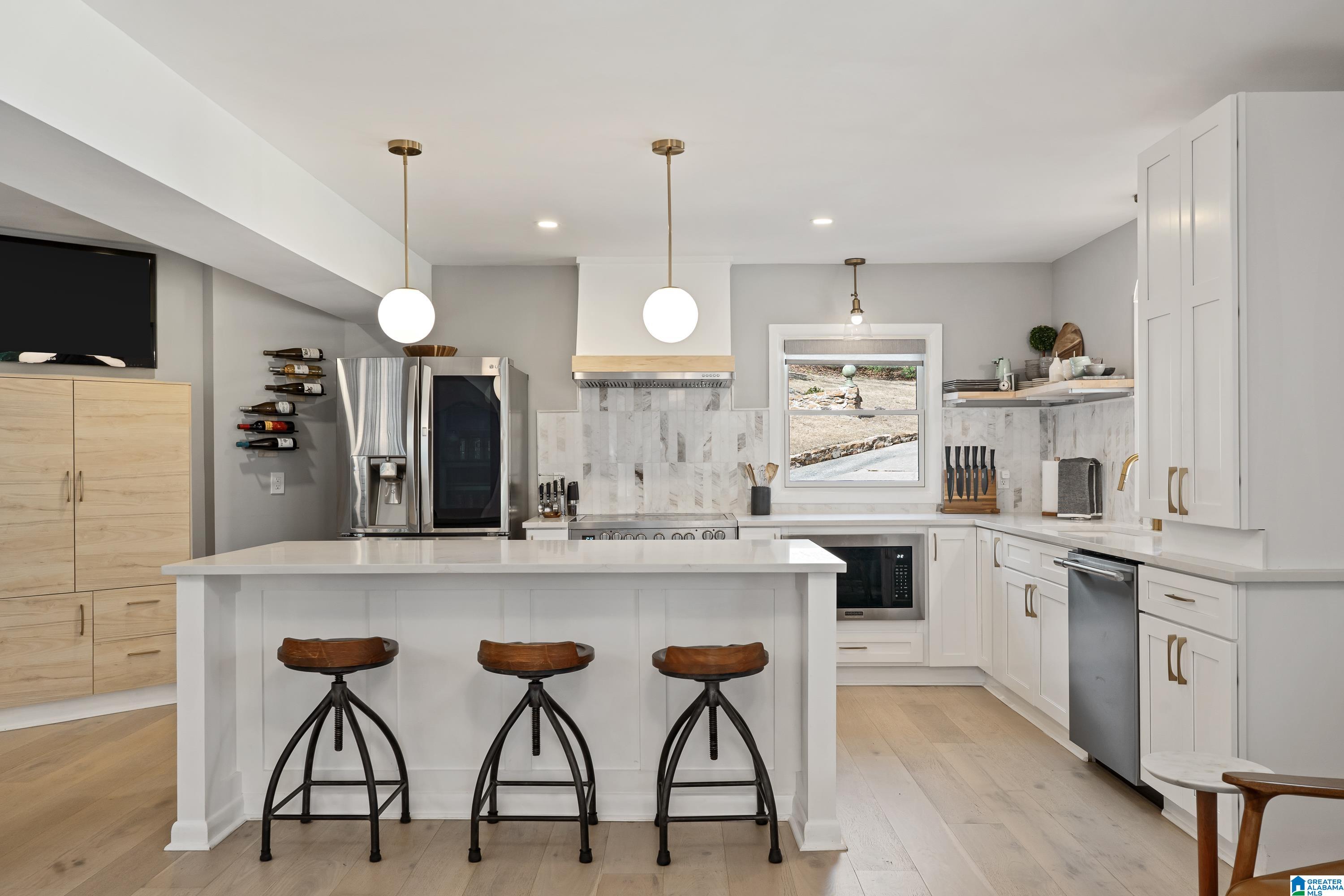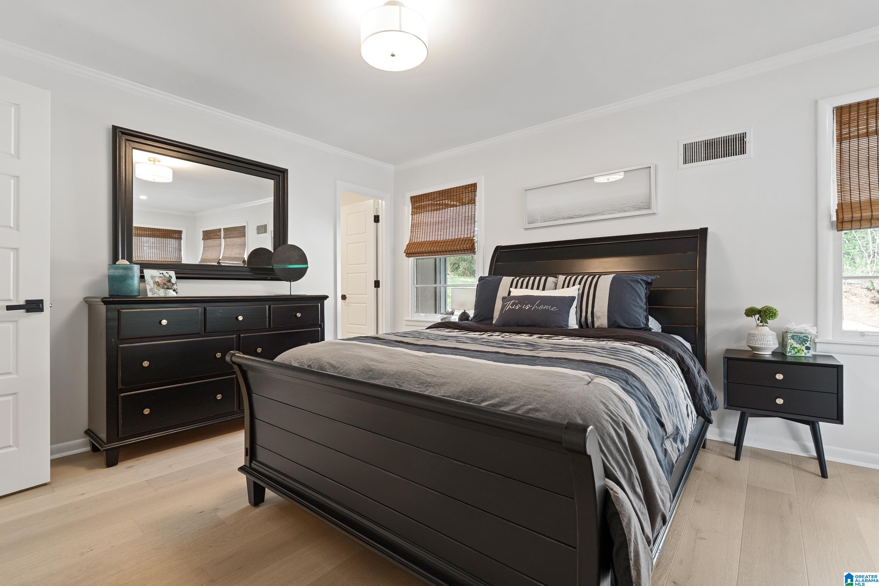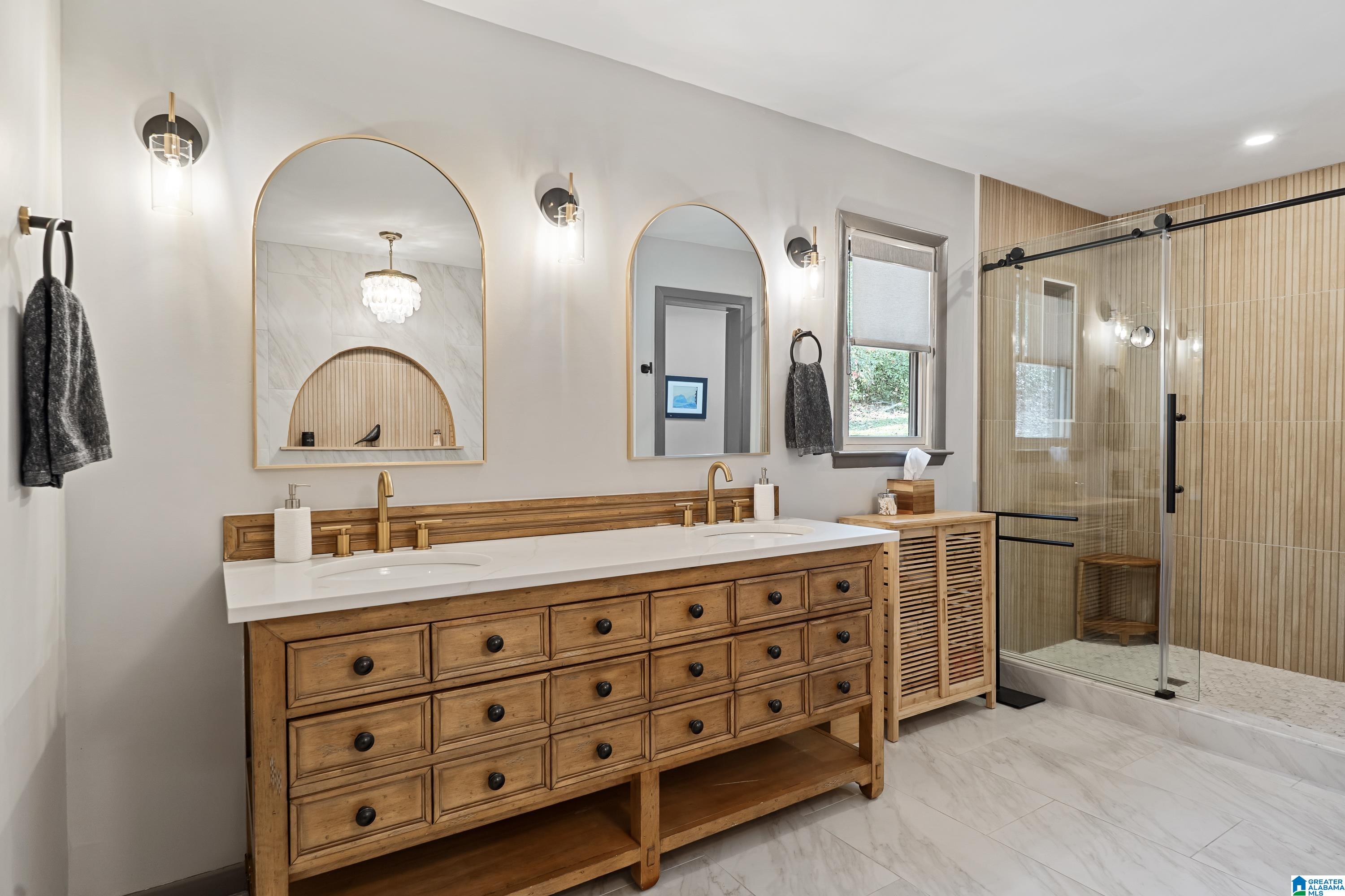Full of character, this beautifully updated mid-century modern home is located on coveted Locksley Drive in Brookwood Forest. An architecturally striking staircase anchors the open main level, where the thoughtfully designed floor plan flows easily between multiple living & dining spaces. The kitchen features gorgeous quartz countertops, perfect for everyday living & entertaining. Upstairs, the primary suite offers two walk-in closets & a spa-like bath with soaking tub, separate shower, double vanity, and private water closet. Three additional bedrooms, two full baths, & a convenient laundry room complete the upper level. Enjoy a large, flat front yard along with multiple outdoor living areas ideal for relaxing or entertaining. The 2-car garage is heated & cooled with a mini-split, offering potential for additional living space. Ample storage is available with several rooms off the garage plus a recently added exterior storage building. The backyard is newly fenced for children & pets!