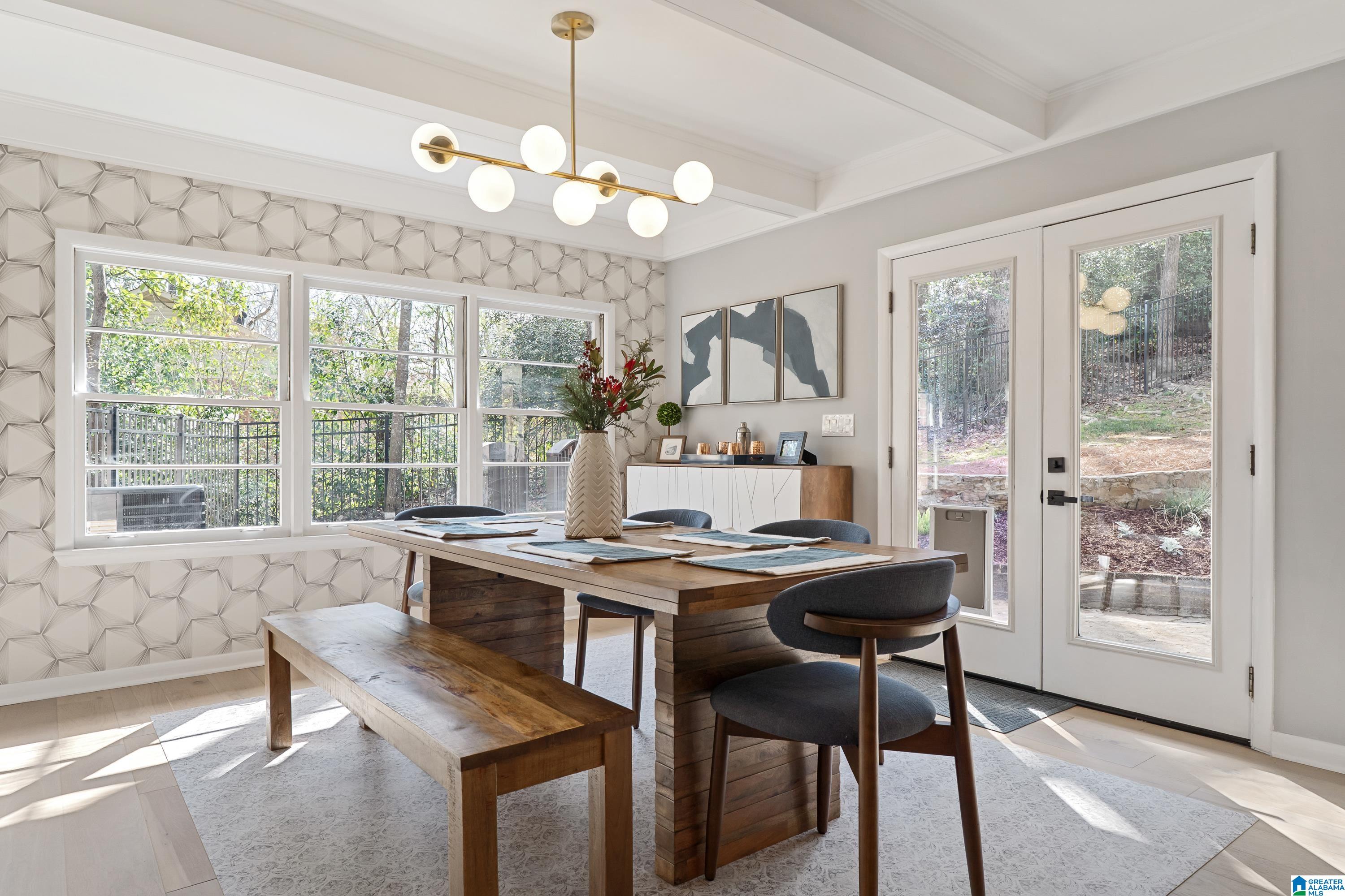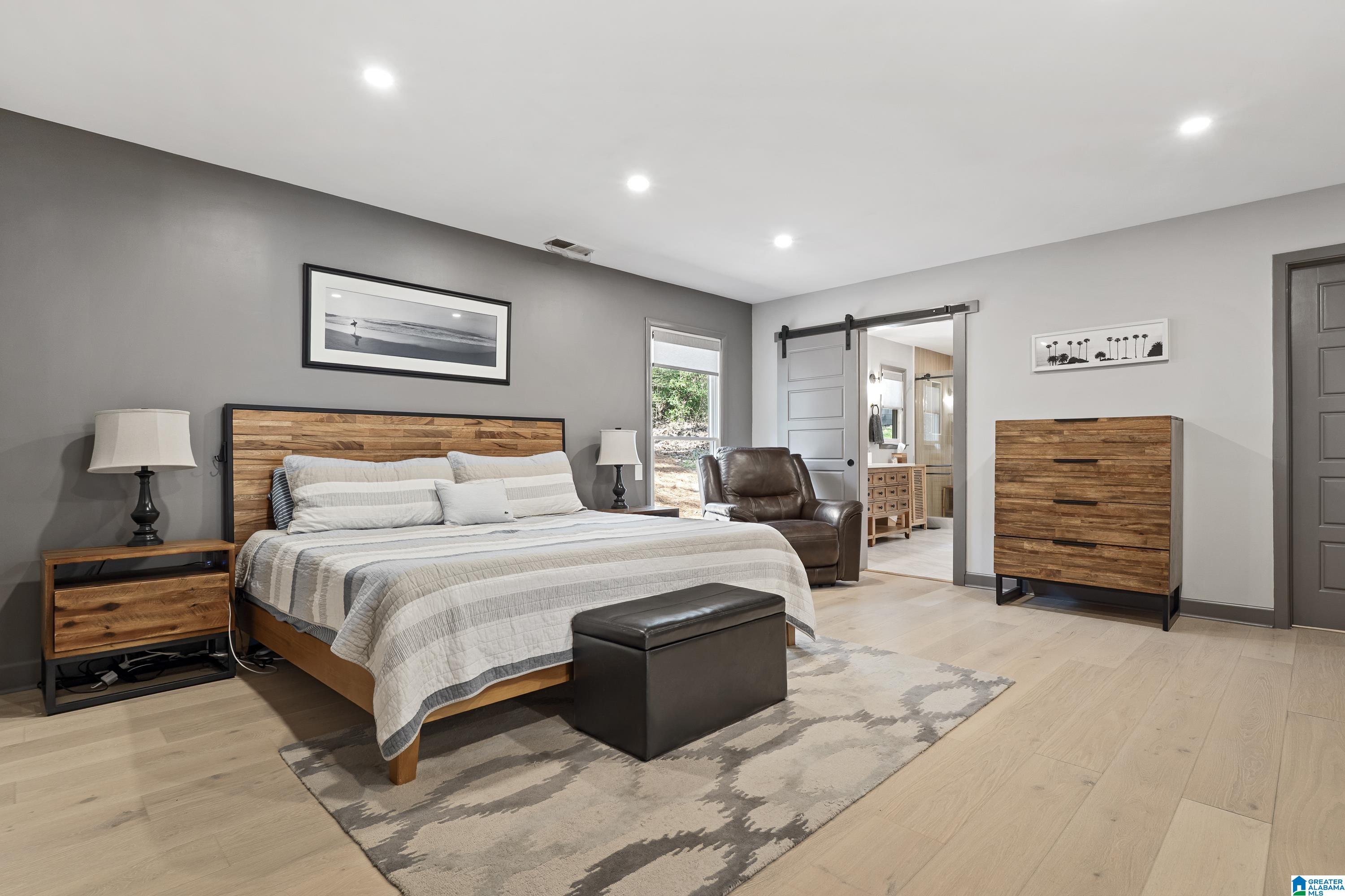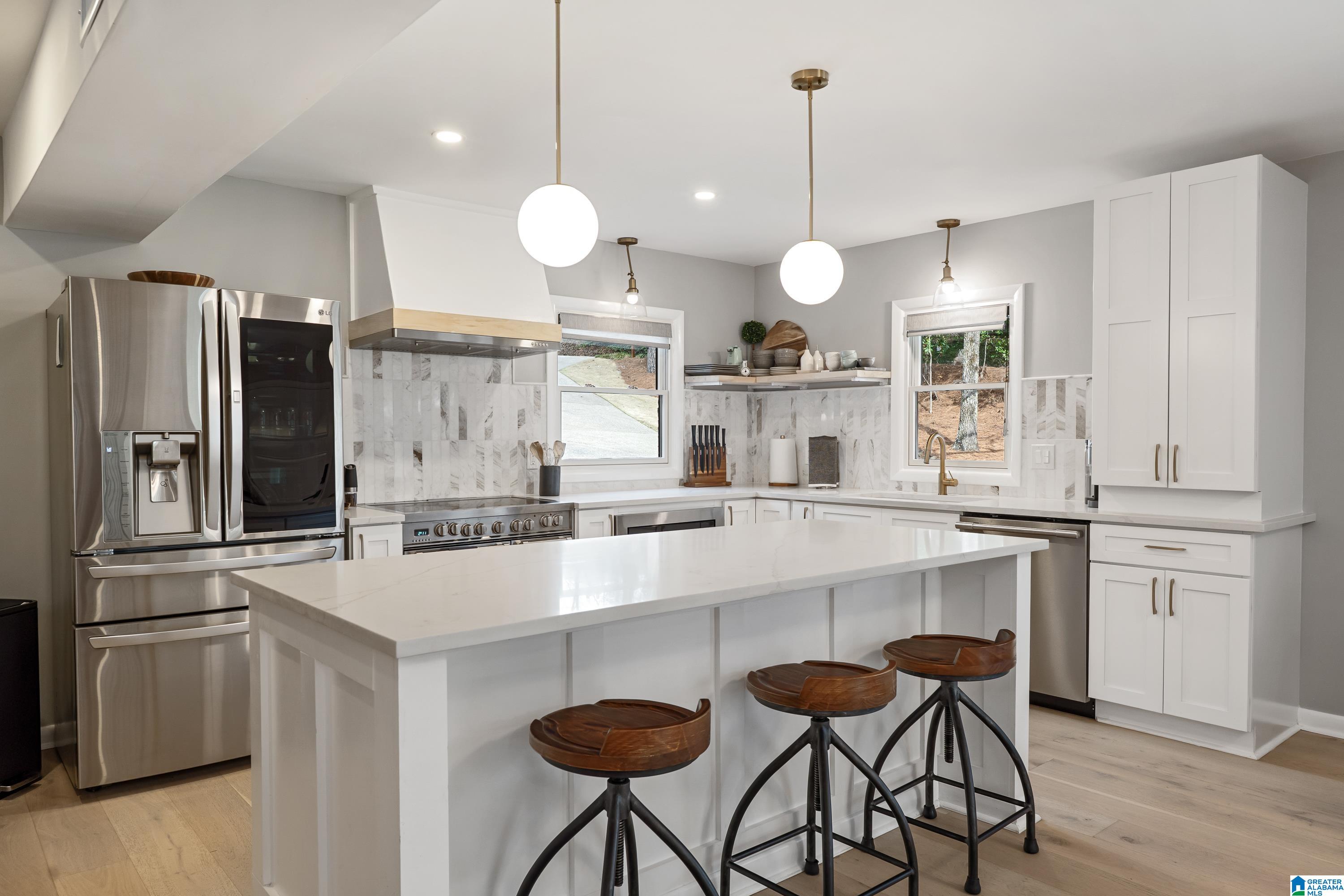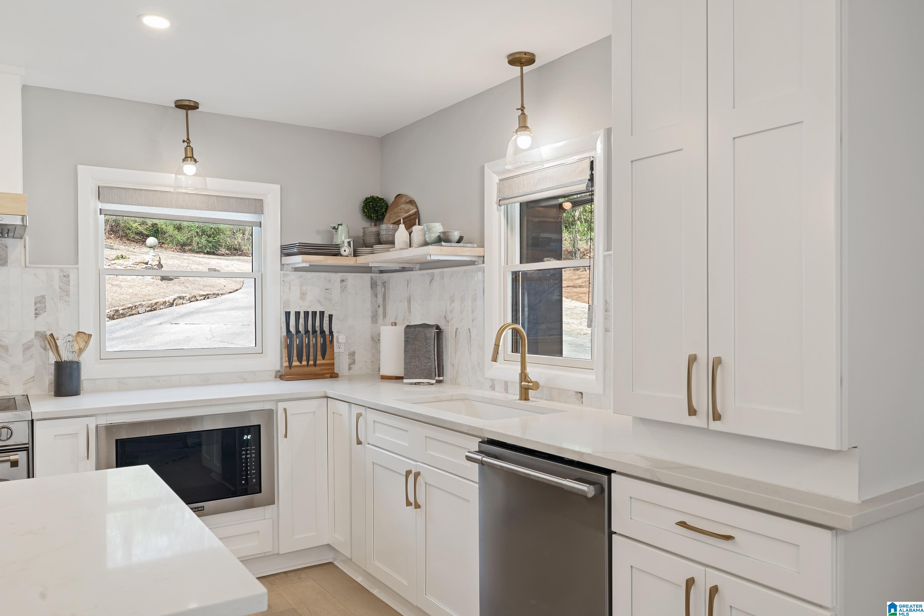 Full of character, this beautifully updated mid-century modern home is located on coveted Locksley Drive in Brookwood Forest. An architecturally striking staircase anchors the open main level, where the thoughtfully designed floor plan flows easily between multiple living & dining spaces. The kitchen features gorgeous quartz countertops, perfect for everyday living & entertaining. Upstairs, the primary suite offers two walk-in closets & a spa-like bath with soaking tub, separate shower, double vanity, and private water closet. Three additional bedrooms, two full baths, & a convenient laundry room complete the upper level. Enjoy a large, flat front yard along with multiple outdoor living areas ideal for relaxing or entertaining. The 2-car garage is heated & cooled with a mini-split, offering potential for additional living space. Ample storage is available with several rooms off the garage plus a recently added exterior storage building. The backyard is newly fenced for children & pets!