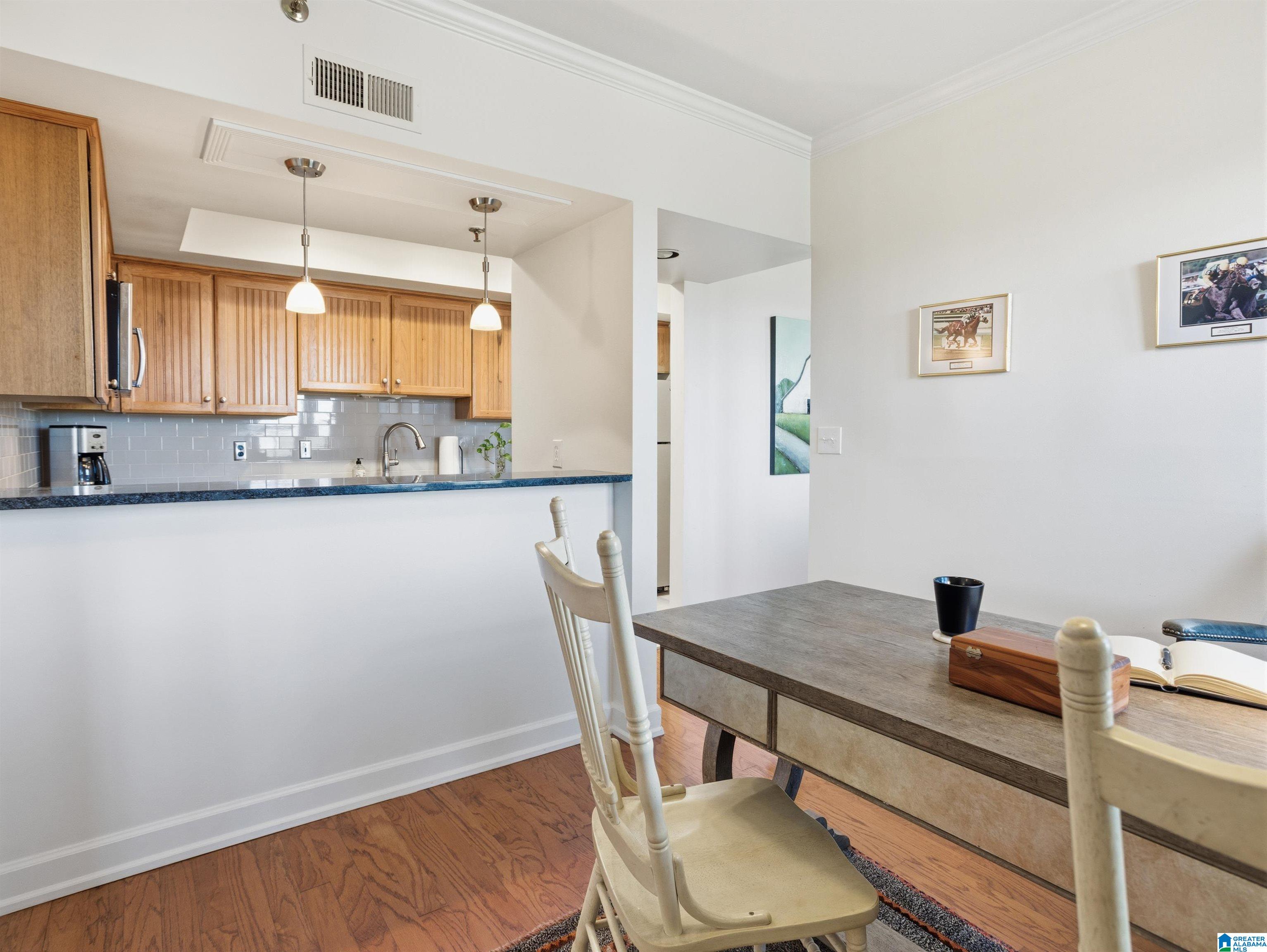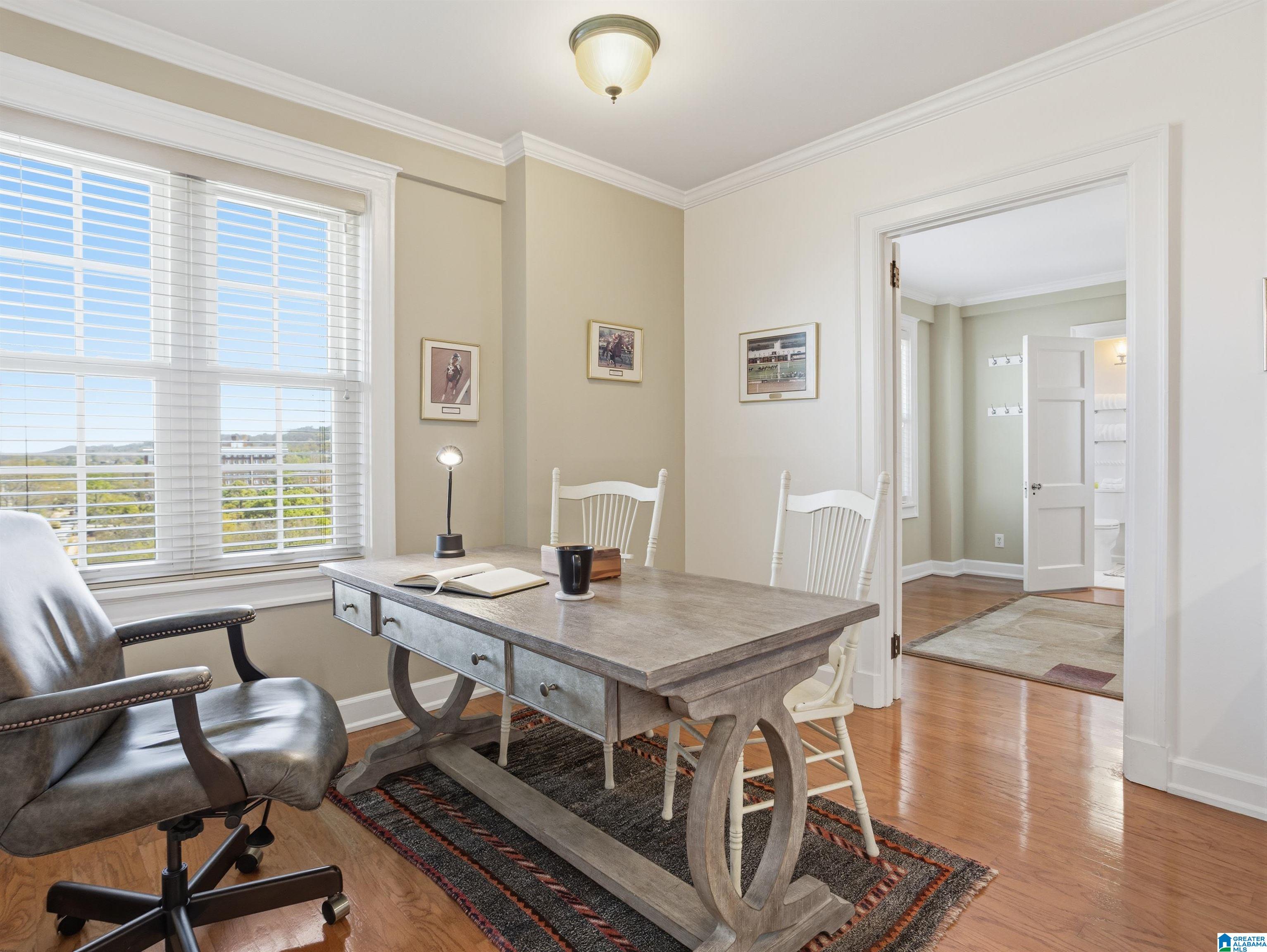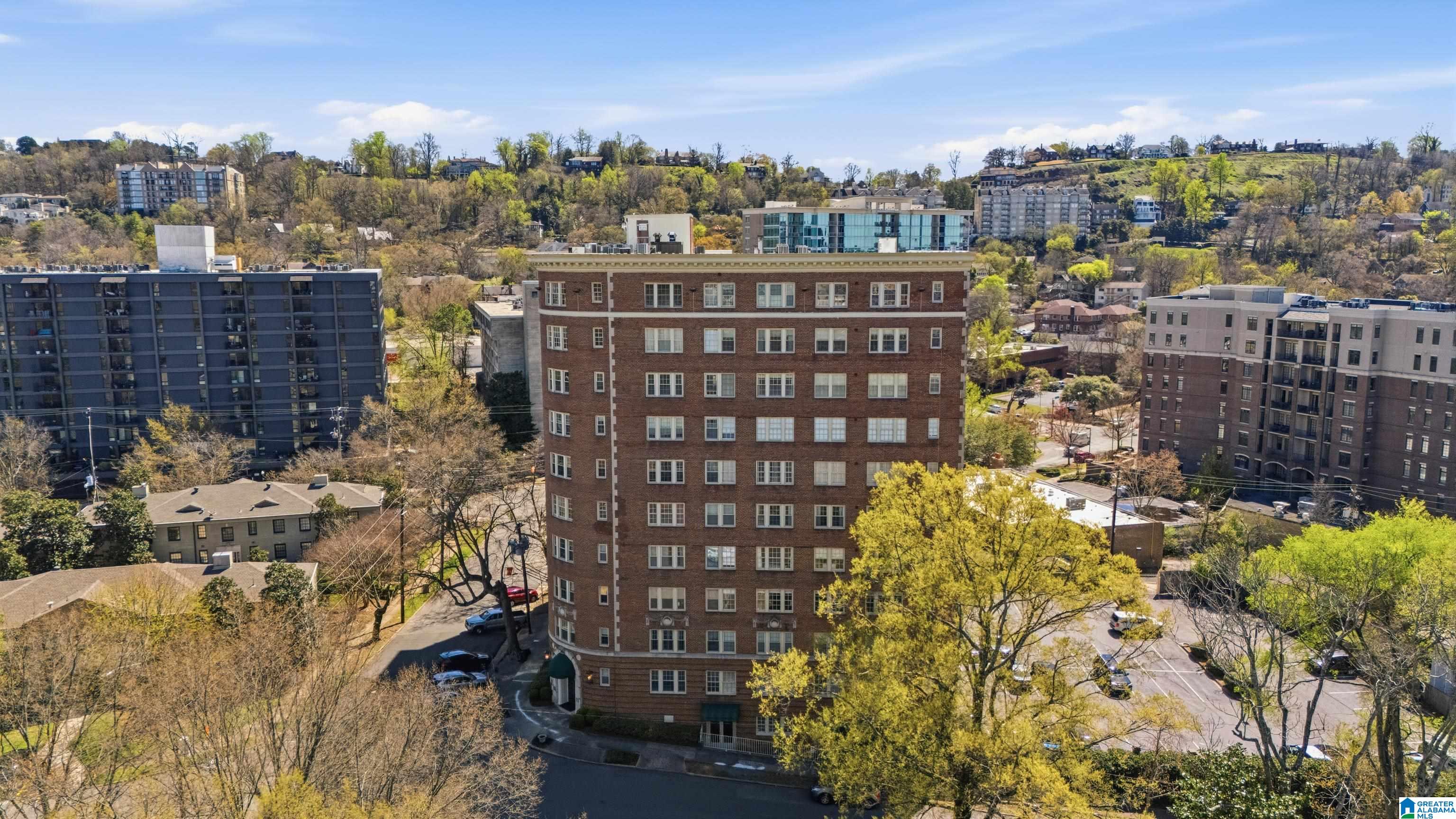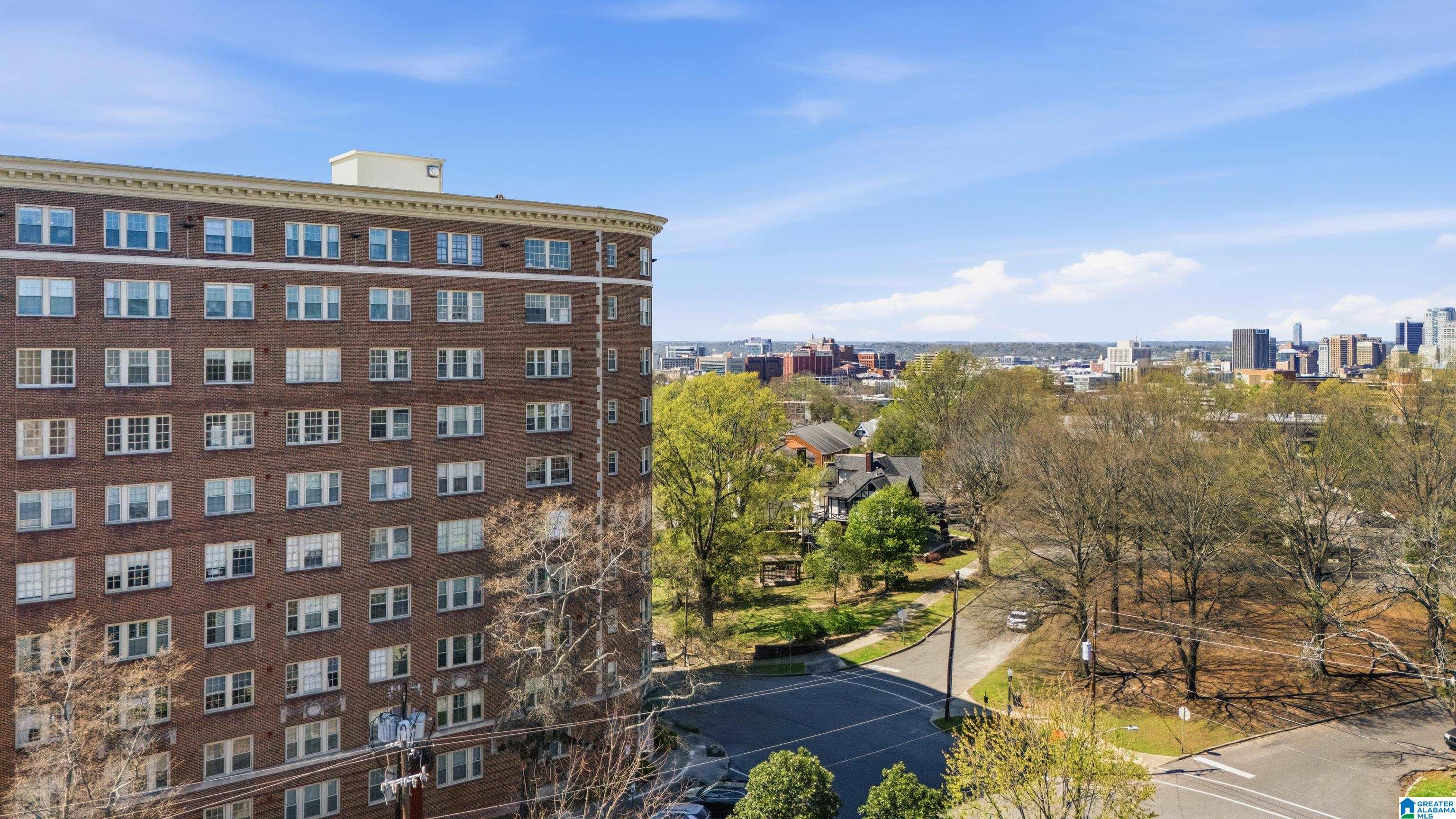 Enjoy timeless elegance in this beautiful 2-bedroom, 2-bathroom condominium located in a historic 1924 building in one of Birmingham’s most historic neighborhoods. Highland Park offers a unique blend of city convenience and neighborhood character. Inside, the residence is filled with natural light, hardwood floors, high ceilings, and large windows create a warm, inviting atmosphere throughout the spacious living & dining areas, and oh what a view! This 1,554-square-foot unit also features additional living space currently used as an office. The updated kitchen has ample cabinetry and workspace while maintaining the home’s historic charm. The split-bedroom floor plan ensures privacy, featuring spacious rooms, walk-in closets, and updated showers designed to provide a luxury hotel feeling. This historic high-rise lets you enjoy 1930s architecture while being just minutes from the vibrant energy of downtown BHAM. Plus the residents enjoy a sparkling pool, gated parking & workout room.