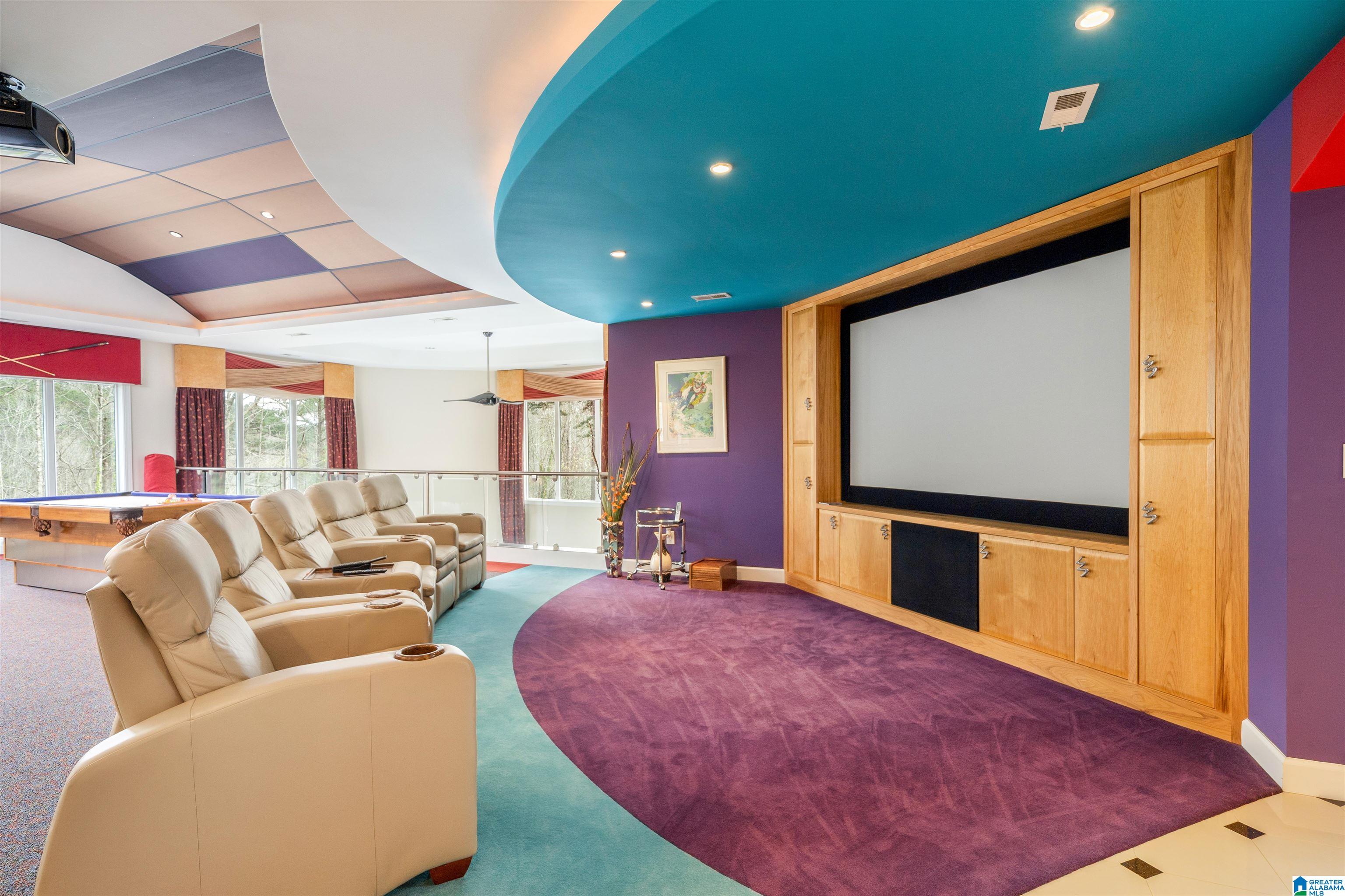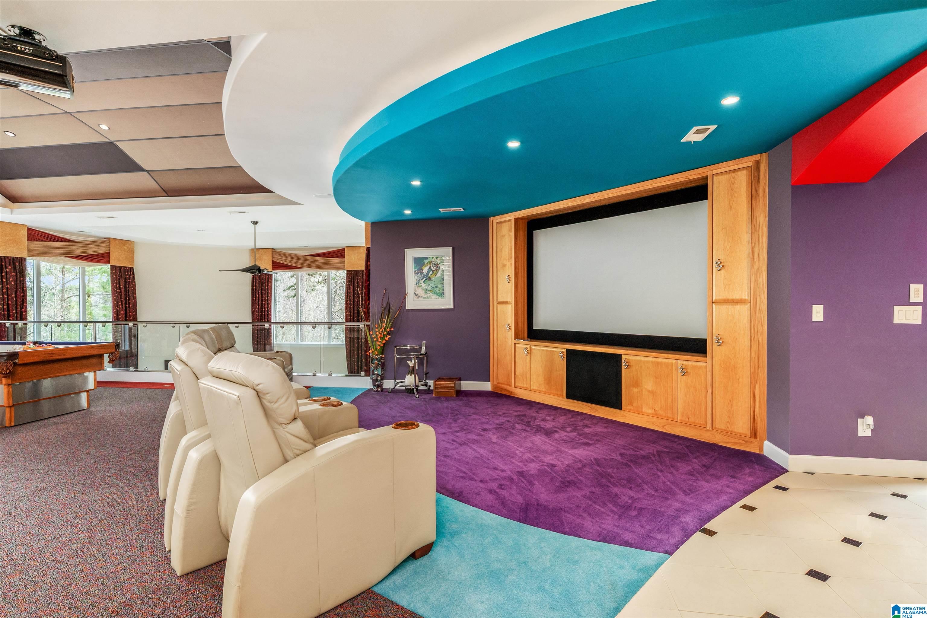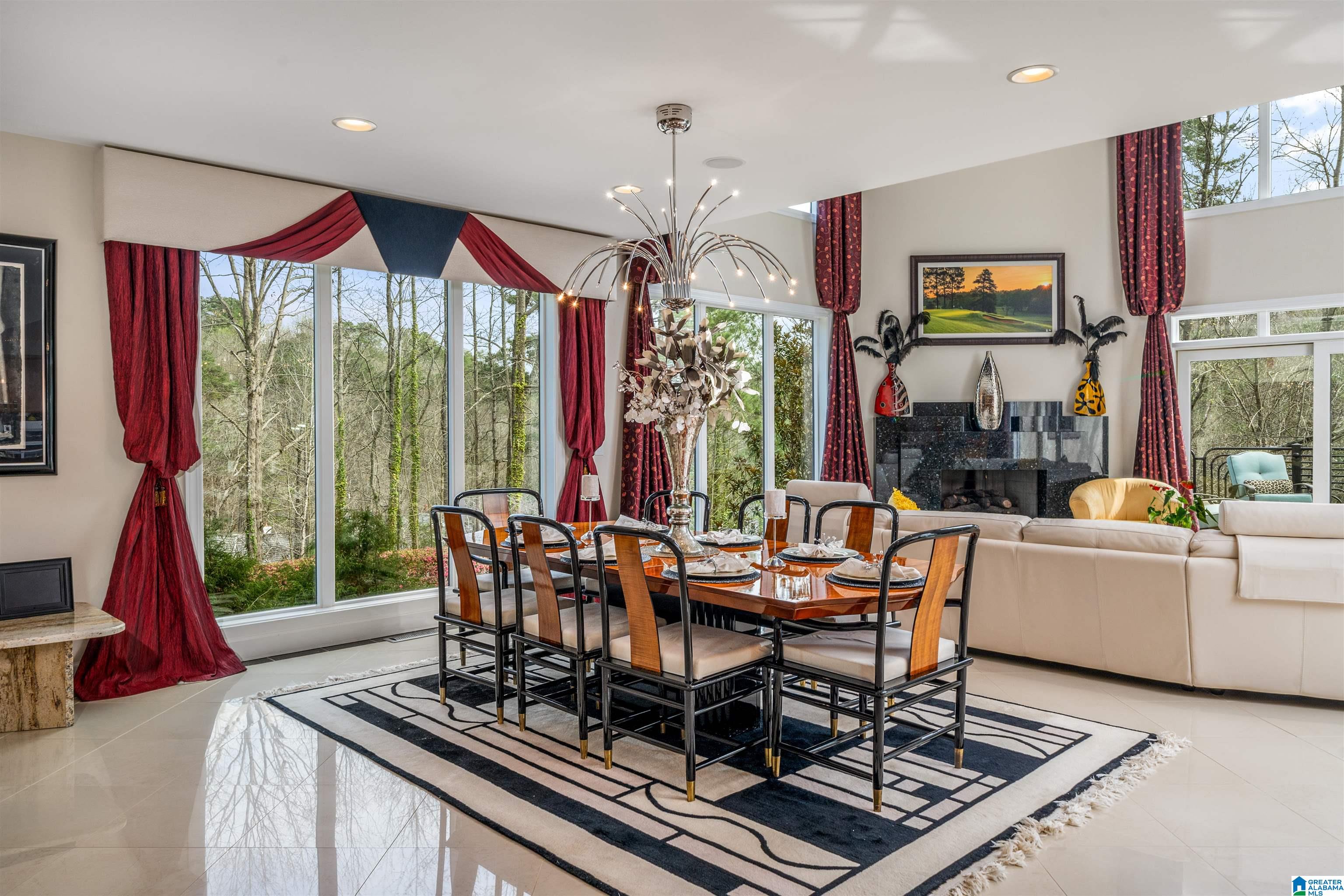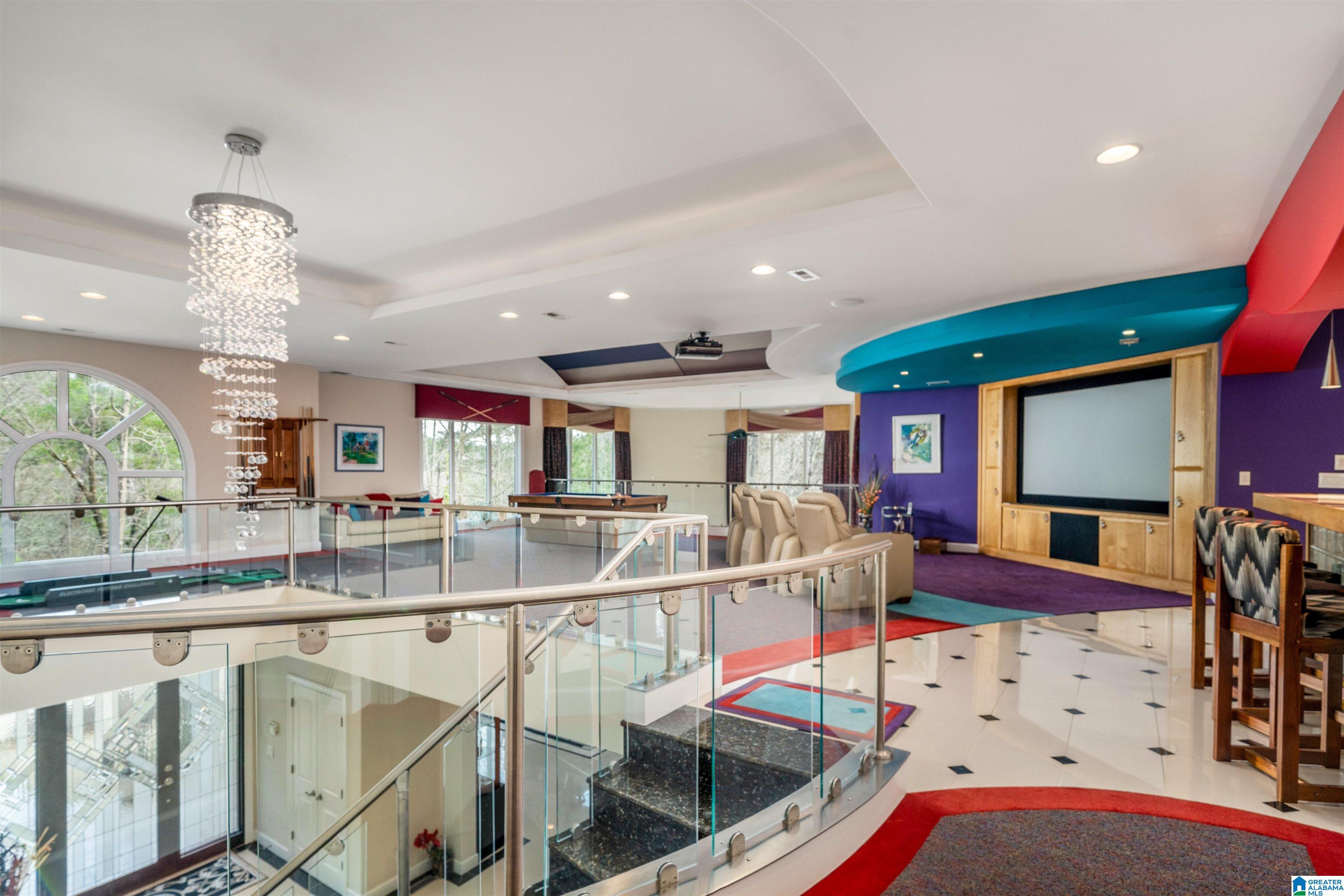 A rare modern masterpiece in the heart of Mountain Brook! Constructed with commercial-grade integrity, the home unfolds with gallery-like openness and light-filled volume. Upon entering, you are welcomed by a sculptural curved staircase with sleek glass panels that rises gracefully to the upper level. Entertainment and retreat spaces include a lavish full kitchen, cinema loft with midnight constellation canopy, and a full bar. Many upscale amenities abound throughout, including: • Whole house automatic emergency generator • Humidification system • Water purification system • 5” gutter guards • 3-zone Programmable heating and cooling (can operate from out of town!) • Epoxy garage floor • Primary bedroom with its own HVAC unit • Steam shower • Electronic privacy shades with remote control in primary bath • Heated floors in primary bath • Main entrance chandelier with electric lift for easy cleaning • 16 distinct granite surfaces throughout the home