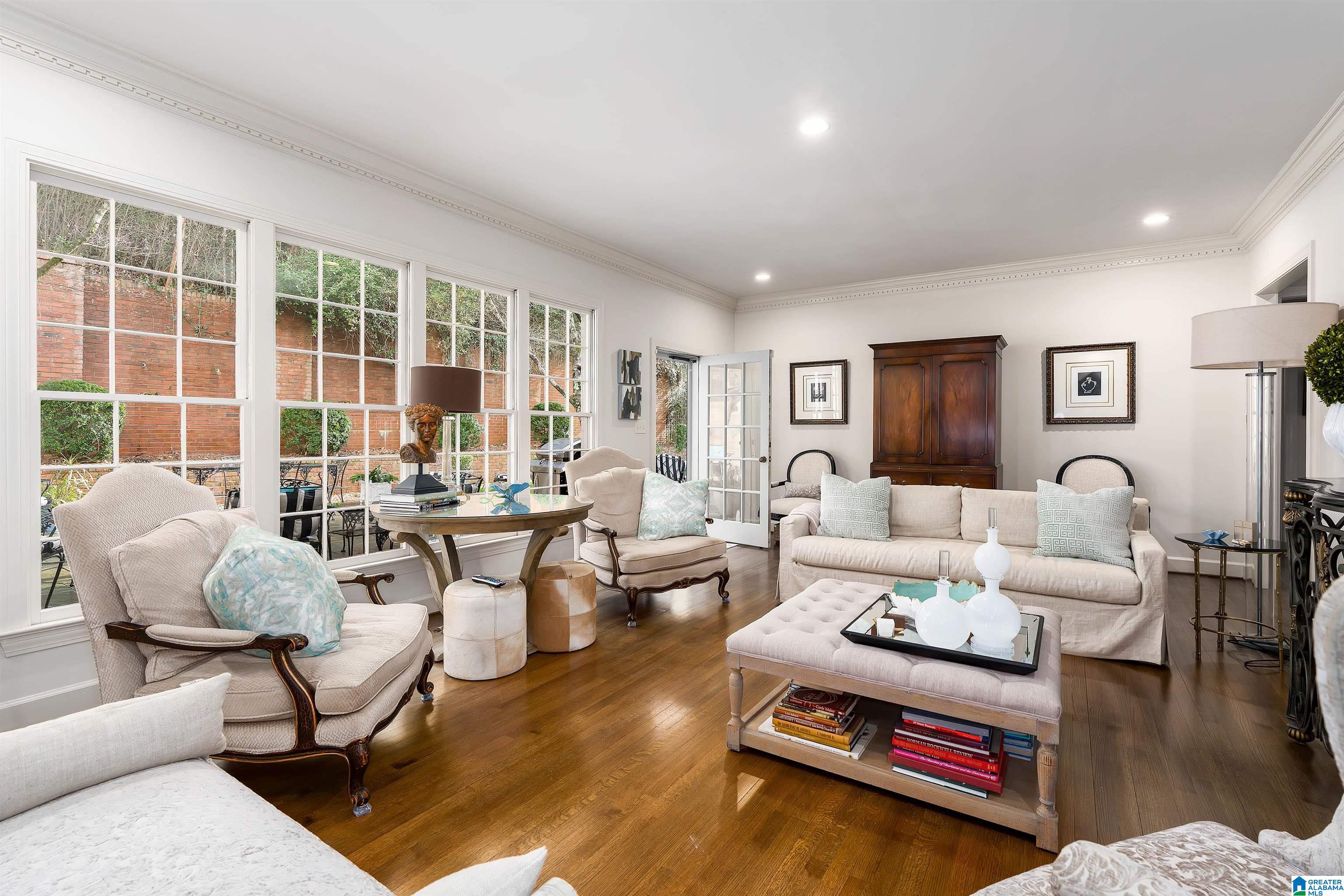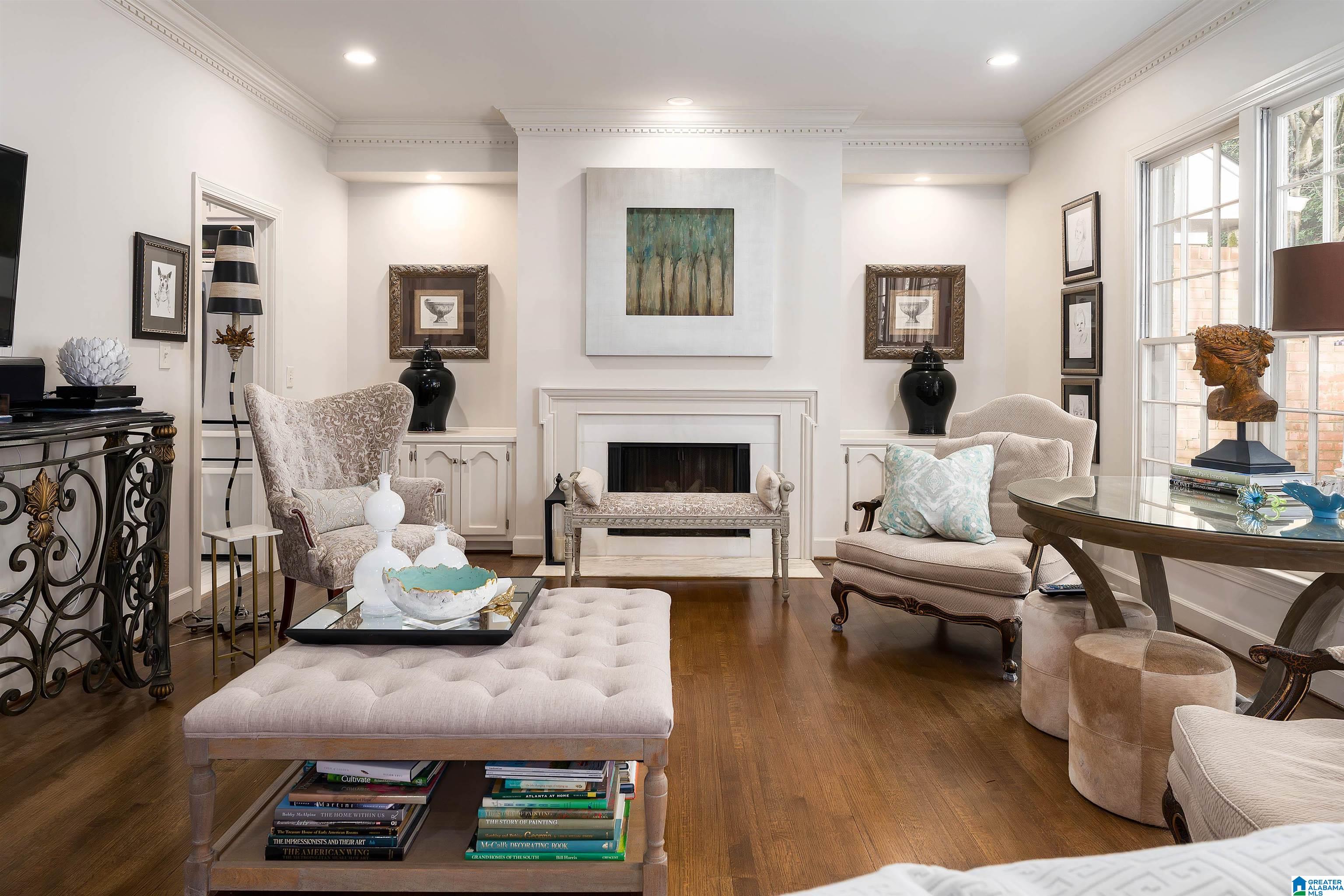 Beautifully renovated and move-in ready in sought-after Cross Creek in Mountain Brook! This charming painted-brick home welcomes you with warm curb appeal and a main-level garage for everyday ease. Gleaming hardwoods flow throughout the main floor, leading to a spacious den filled with natural light and views of the private patio courtyard—ideal for grilling, dining, and entertaining behind a brick privacy wall. The updated kitchen offers an abundance of cabinetry, marble countertops, stainless appliances, and great workspace for the home chef. Enjoy the convenience of a main-level primary suite with a stunning en-suite bath and fresh finishes. Upstairs, you’ll find two heated and cooled bonus/storage spaces—perfect for a home office, hobby room, or seasonal storage. Monthly HOA covers garbage collection and all lawn care, making low-maintenance living a reality in a prime location. Plantation shutters, updated lighting complete the look—minutes to schools and Village shopping nearby!!
